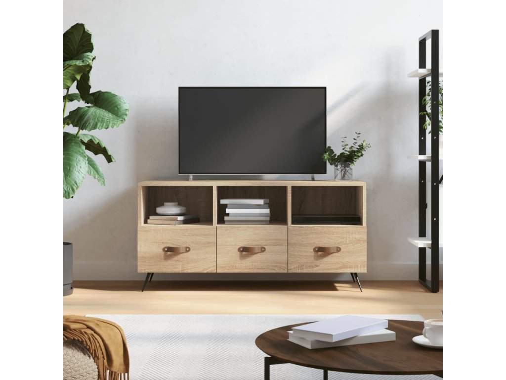 - Pevný materiál: Spracované drevo je mimoriadne kvalitné s hladkým povrchom a vyznačuje sa pevnosťou, stabilitou a odolnosťou proti vlhkosti. TV stolík je vyrobený zo spracovanéno dreva a ľahko sa čistí.
