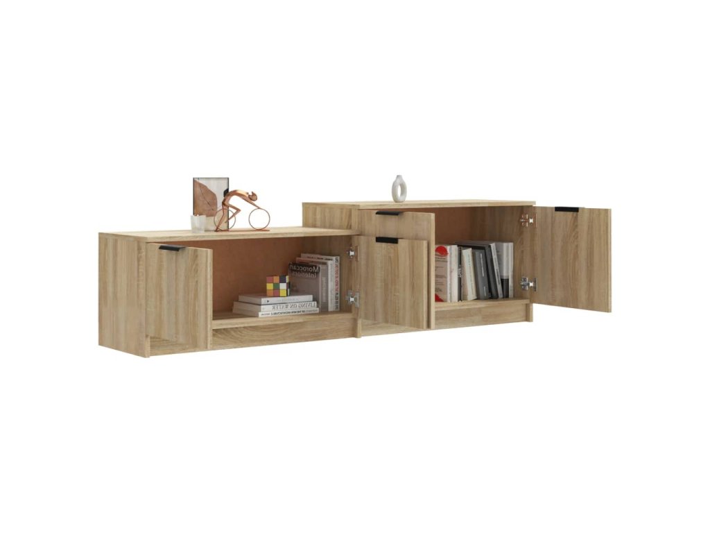 - Dostatok úložného priestoru: Stereo skrinka obsahuje dve priehradky a štyri zásuvku na prehľadné usporiadanie DVD prehrávačov, herných konzol, streamovacích zariadení a nosičov médií.