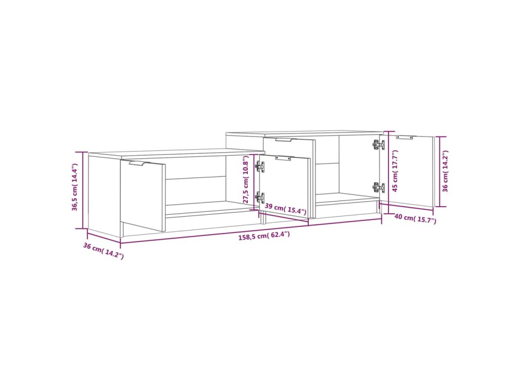 - Rozmery: 158,5 x 36 x 45 cm (Š x H x V)
