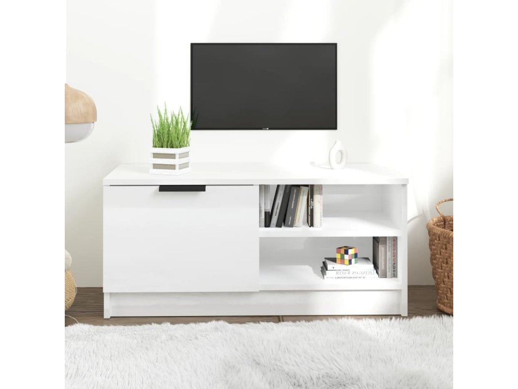 - Dostatok úložného priestoru: Stereo skrinka obsahuje priehradku a dve poličky na prehľadné usporiadanie DVD prehrávačov, herných konzol, streamovacích zariadení a nosičov médií.