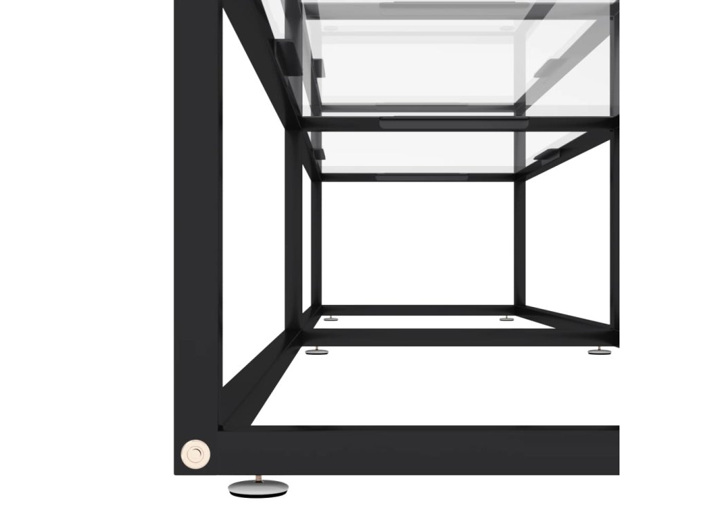 Táto stereo skrinka je vyrobená z tvrdeného skla, je odolná a stabilná. Ľahko sa čistí aj vlhkou handričkou. Oceľový rám s práškovým povrchom zvyšuje jej robustnosť. Polička pod stolovú dosku poskytuje dostatok úložného priestoru, aby ste mali svoje DVD, multimediálne zariadenia, knihy a iné malé predmety usporiadané a na dosah ruky.