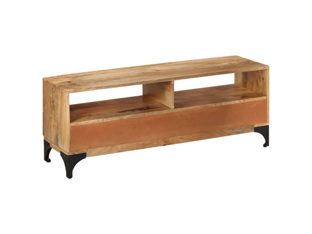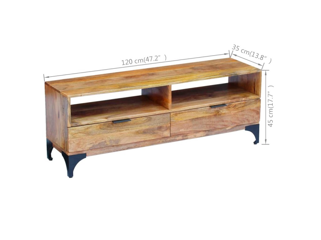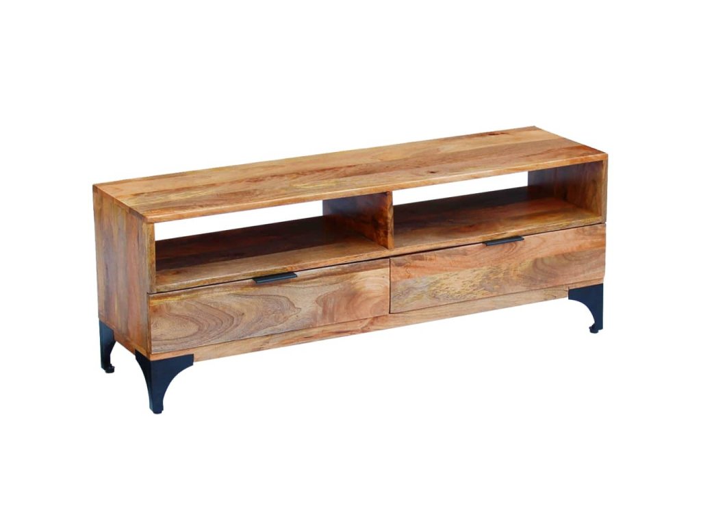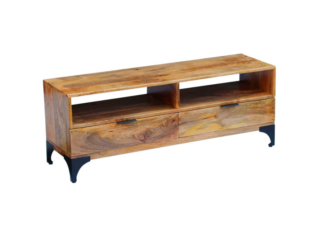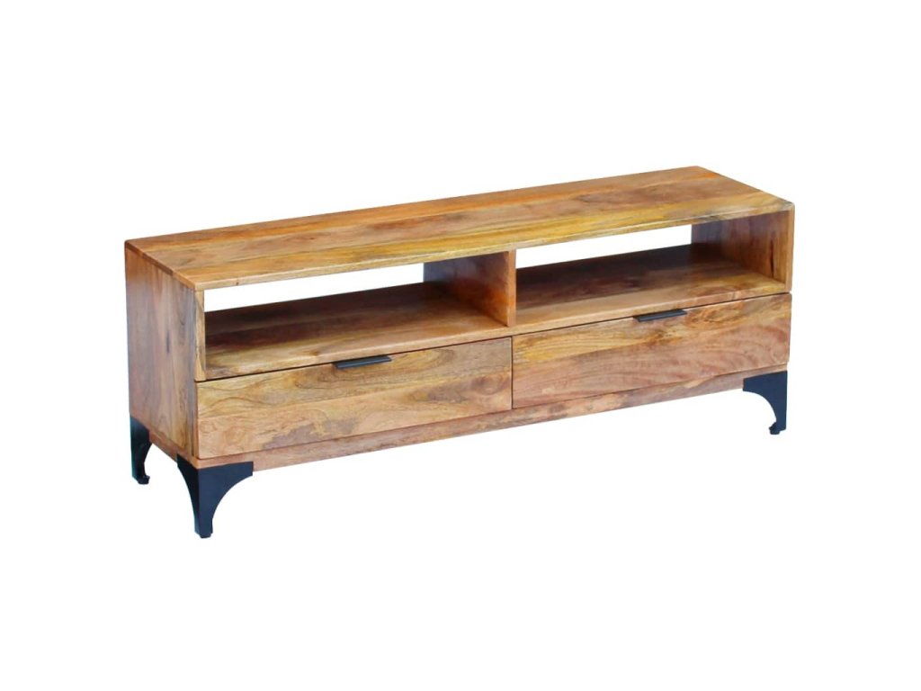 Tento televízny stolík bude jedinečný doplnok vo vašej izbe. Vďaka svojej konštrukcii z masívneho dreva je stabilný a bezpečne si na ňom môžete umiestniť nápoje, ovocné koše alebo dekoratívne predmety. S dvoma poličkami a dvoma zásuvkami si môžete svoje veci dobre usporiadať a odložiť.