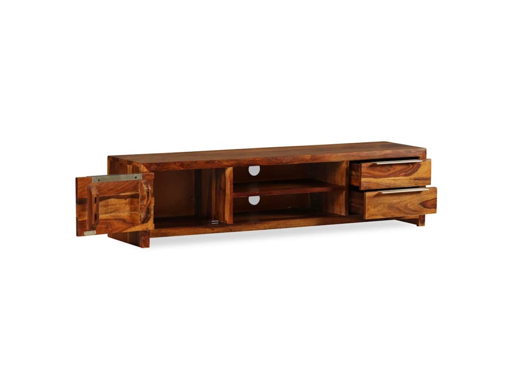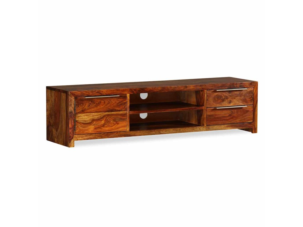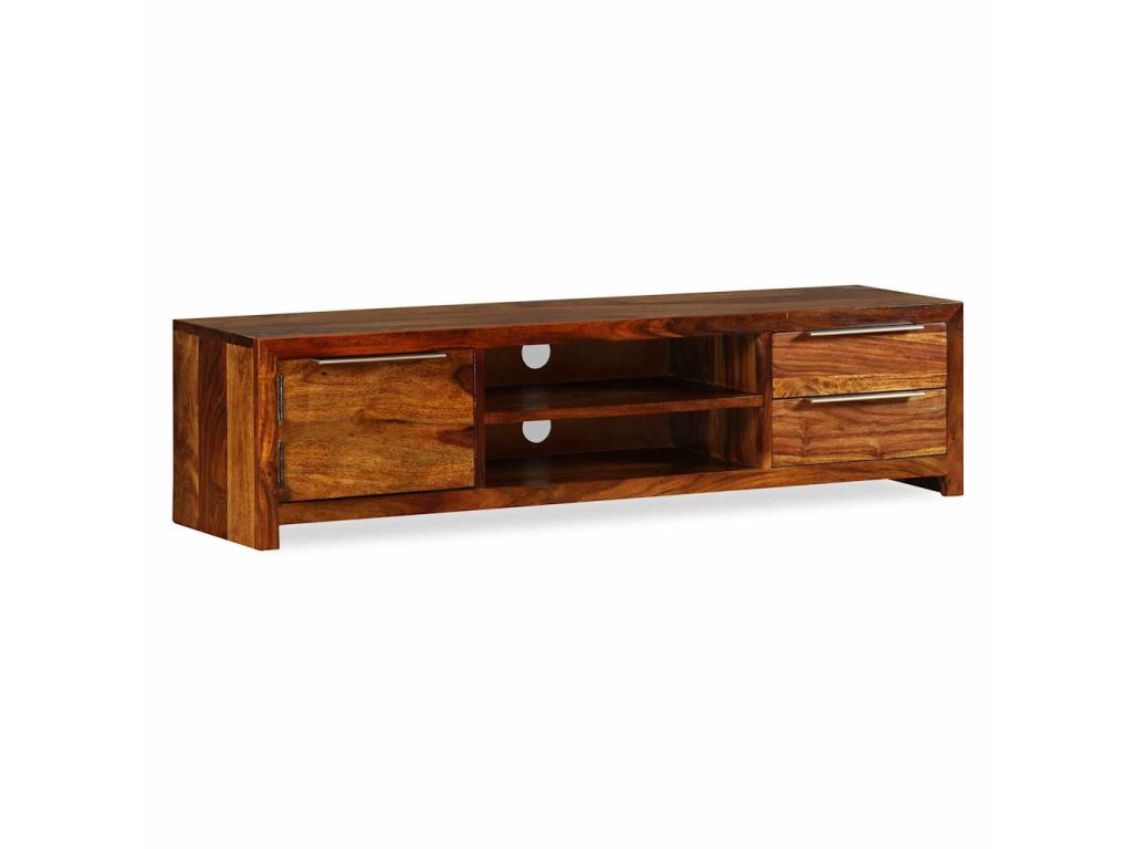 Táto TV skrinka je vyrobená z masívneho dreva akácie, čo je tropické drevo vyznačujúce sa svojou štruktúrou. Je známe aj pod menom palisander. Remeselné spracovanie a krásne vzory dreva zaručujú, že je každý kus nábytku unikátny a trochu odlišný od ďalšieho. Motáž je skutočne jednoduchá.