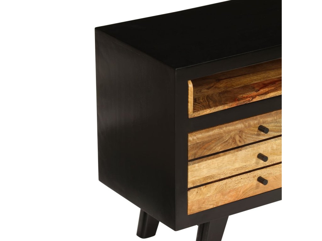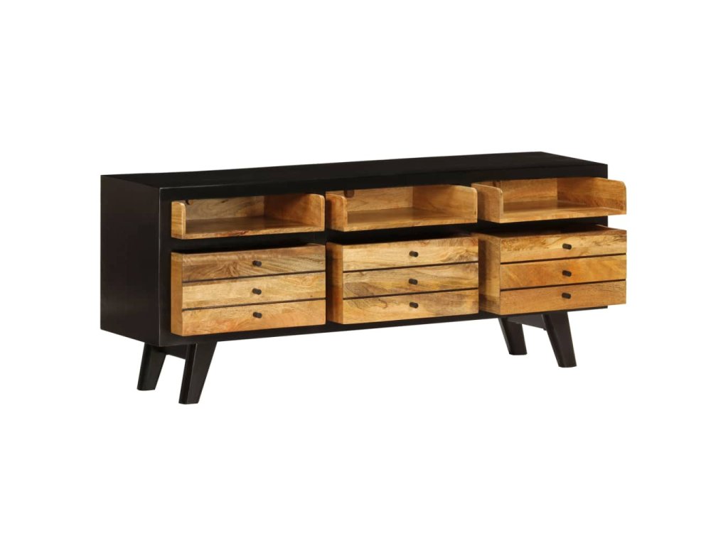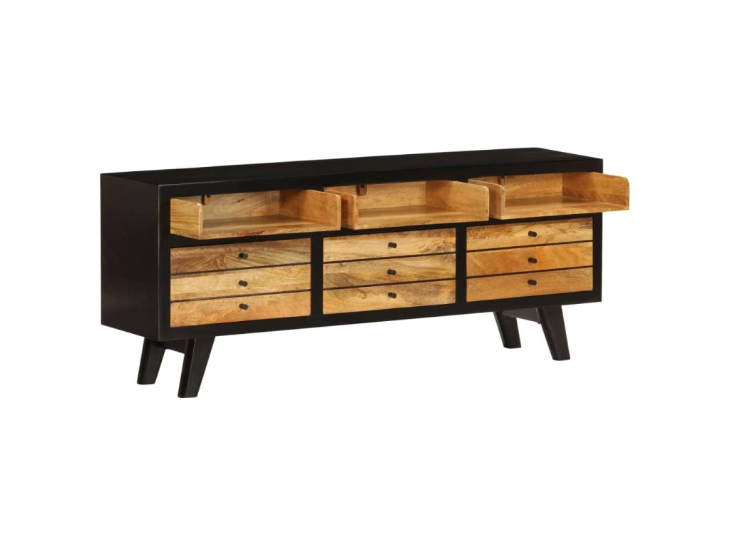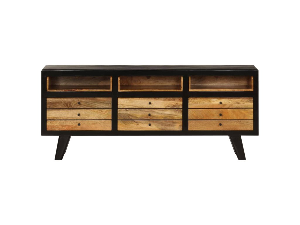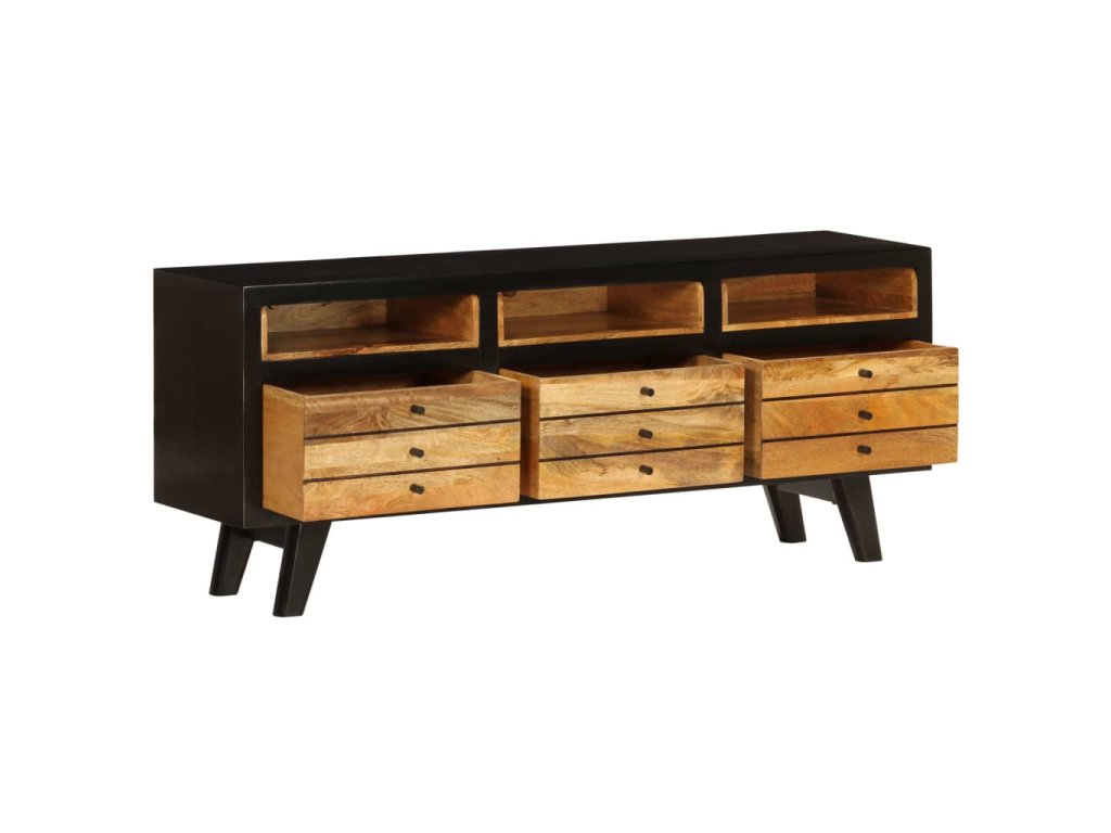 Tento TV stolík je ručne vyrobený z masívneho mangovníkového dreva, ktoré je pevné, stabilné, odolné a krásne. Remeselné prevedenie mu dodáva úžasný retro štýl. Každý krok výrobného procesu je robený s tou najväčšou starostlivosťou, či už sa jedná o leštenie, lakovanie a natieranie. Vďaka remeselnému prevedeniu a nádhernej štruktúre dreva je každý kus tohoto nábytku jedinečný a trochu odlišný od ostatných kusov.