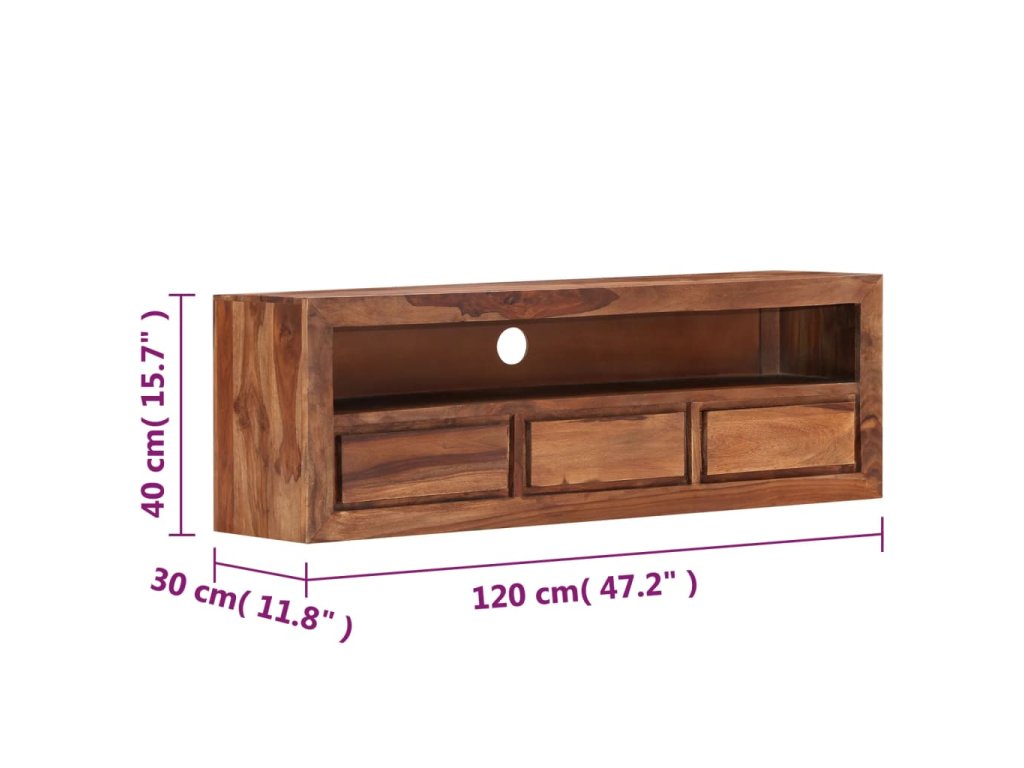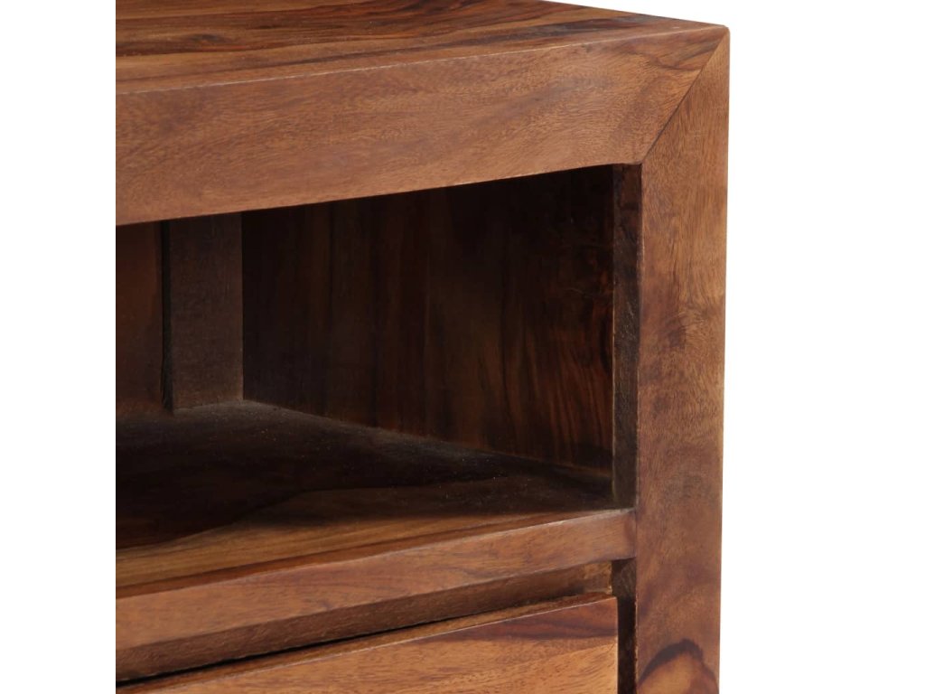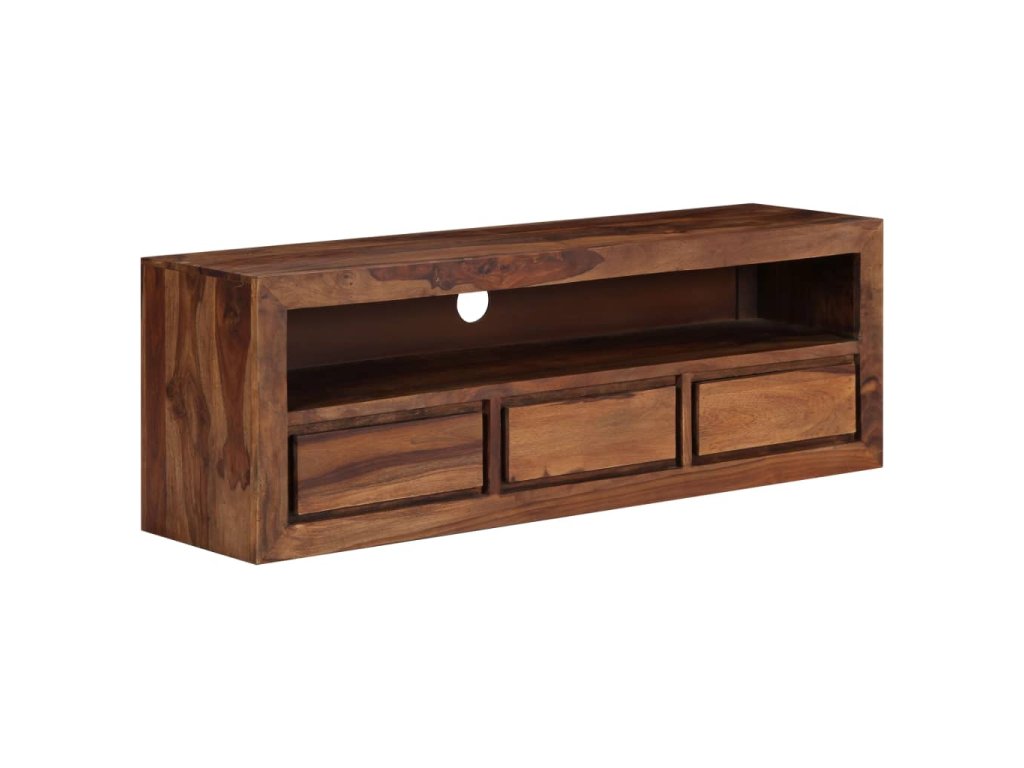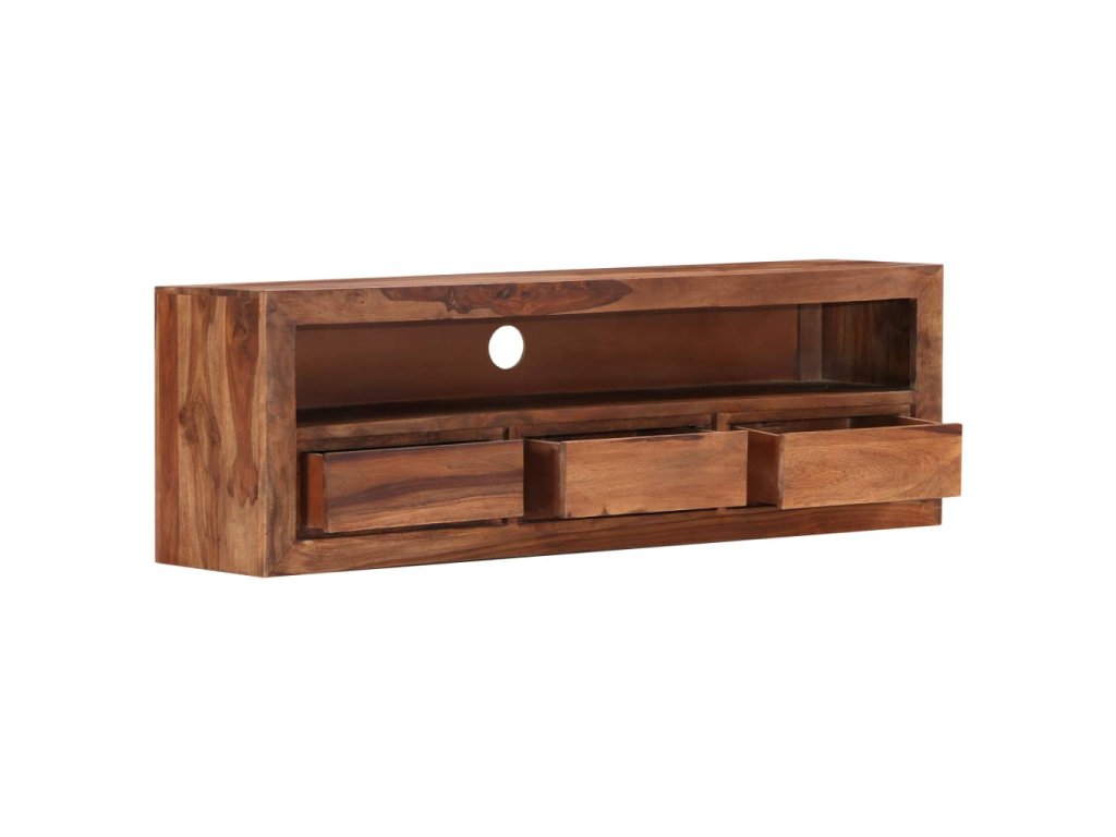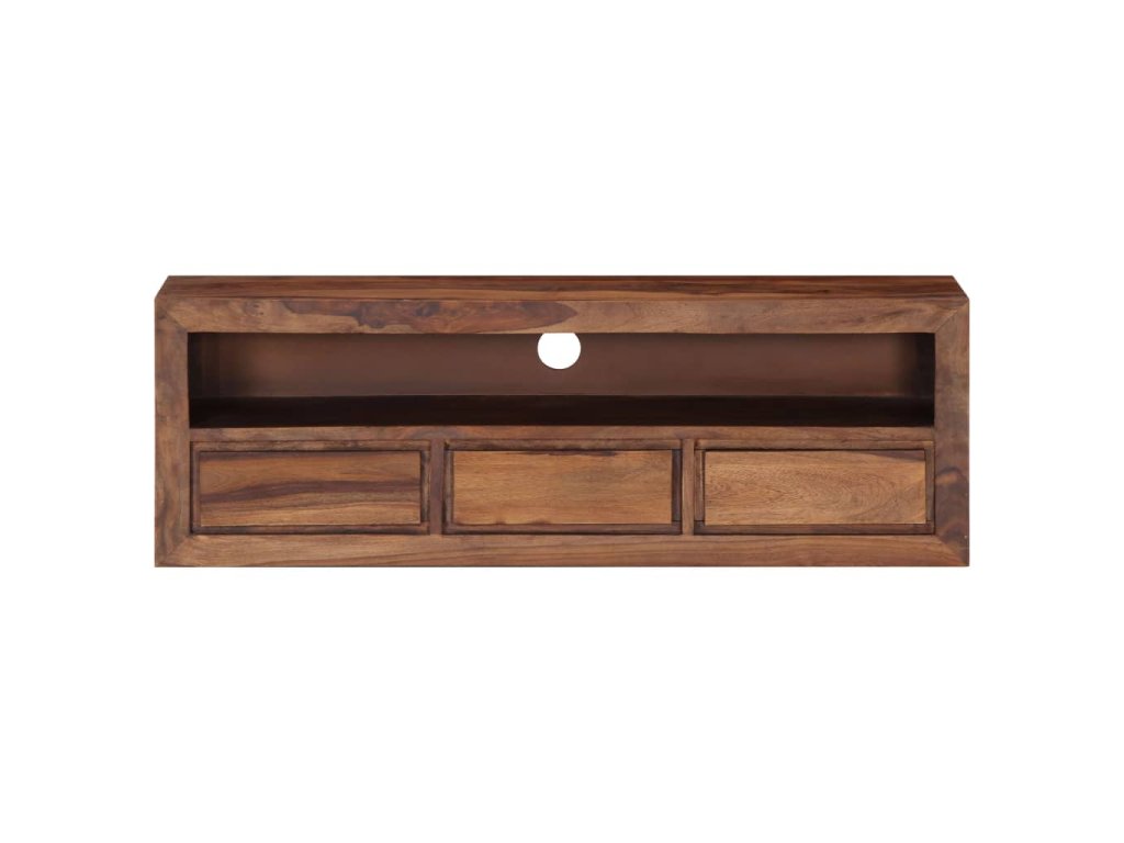 TV stolík je vyrobený z masívneho akáciového dreva. Masívne akáciové drevo je taktiež známe ako ružové drevo alebo palisander. Je to tropické tvrdé drevo, ktoré sa vyznačuje svojou prirodzenou zrnitosťou a hladkou štruktúrou. Neštiepi sa a ani sa nerozdeľuje. V dôsledku toho je táto krásne navrhnutá skrinka mimoriadne stabilná, trvácna a pútavá. Táto stereo skrinka je plne ručne vyrobená a vďaka peknej štruktúre dreva je každý kus tohto nábytku jedinečný a mierne odlišný od ostatných kusov. HiFi skrinka má 3 zásuvky a 1 priehradku, ktoré poskytujú dostatok priestoru na uloženie vašich multimediálnych zariadení, kníh, ale aj rôznych ďalších predmetov.