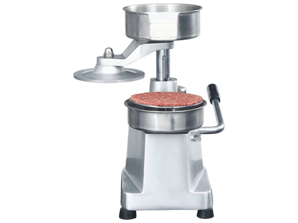 Z mletého mäsa, rýb alebo zeleniny si môžete vytvoriť šťavnaté karbonátky. Naplňte nádobu potrebnými prísadami, ktoré sa vďaka presnej forme lisu vyformujú tak, aby sa vytvorila jednotná hamburgerová placka. Telo je vyrobené z hliníkovej zliatiny, zatiaľ čo diely, ktoré prichádzajú do styku s potravinami sú vyrobené z vysokokvalitnej nerezovej ocele. Stroj na výrobu hamburgerov je veľmi pevný a veľmi odolný aj pri intenzívnom a náročnom používaní.
