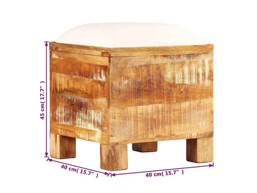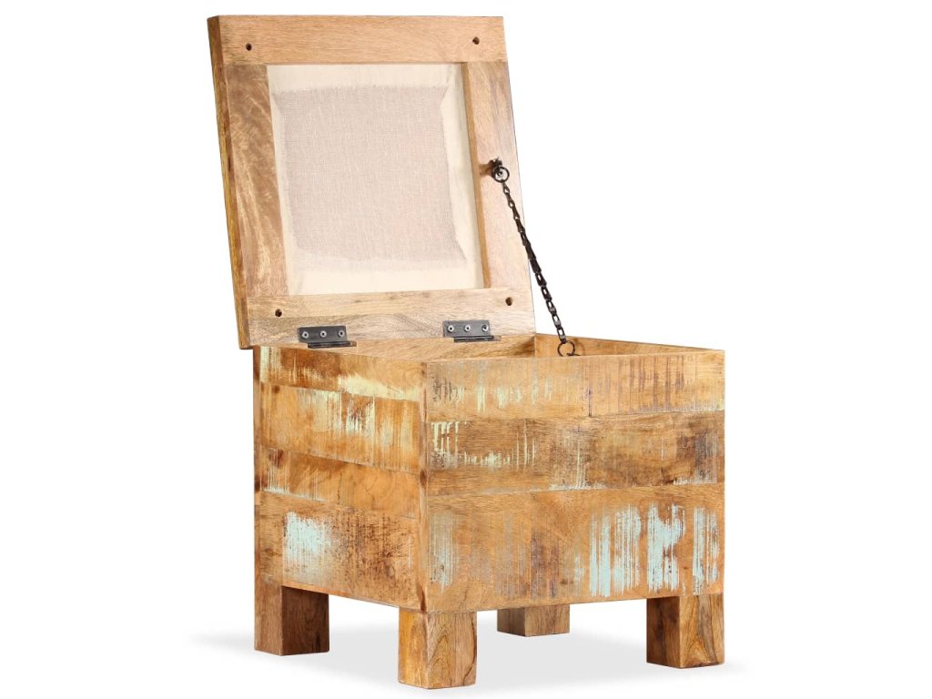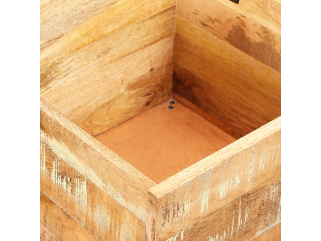 Truhlica je vyrobená z recyklovaného masívu, ktorý má podobné vlastnosti ako napríklad mahagónové, tíkové, tvrdé, mangové, akáciové drevo a podobne. Takéto drevo je pevné, stabilné, trvácne a má zaujímavú textúru. Známky opotrebovania spolu dodávajú každému kúsku nábytku charakteristický vzhľad a pôsobivý vintage dizajn. Každý krok výrobného procesu sa vykonáva s najväčšou starostlivosťou, či už je to spracovanie už použitého dreva do nového výrobku, leštenie, natieranie alebo lakovanie. Výrobok je už zostavený, nie je potrebné ho montovať.