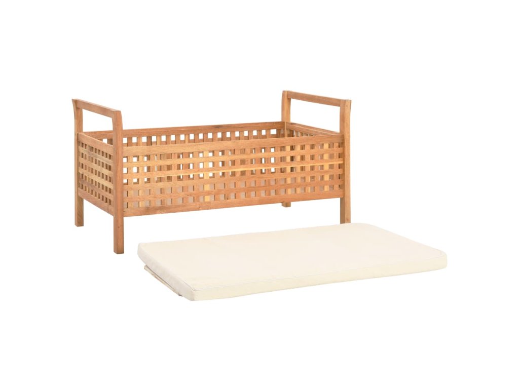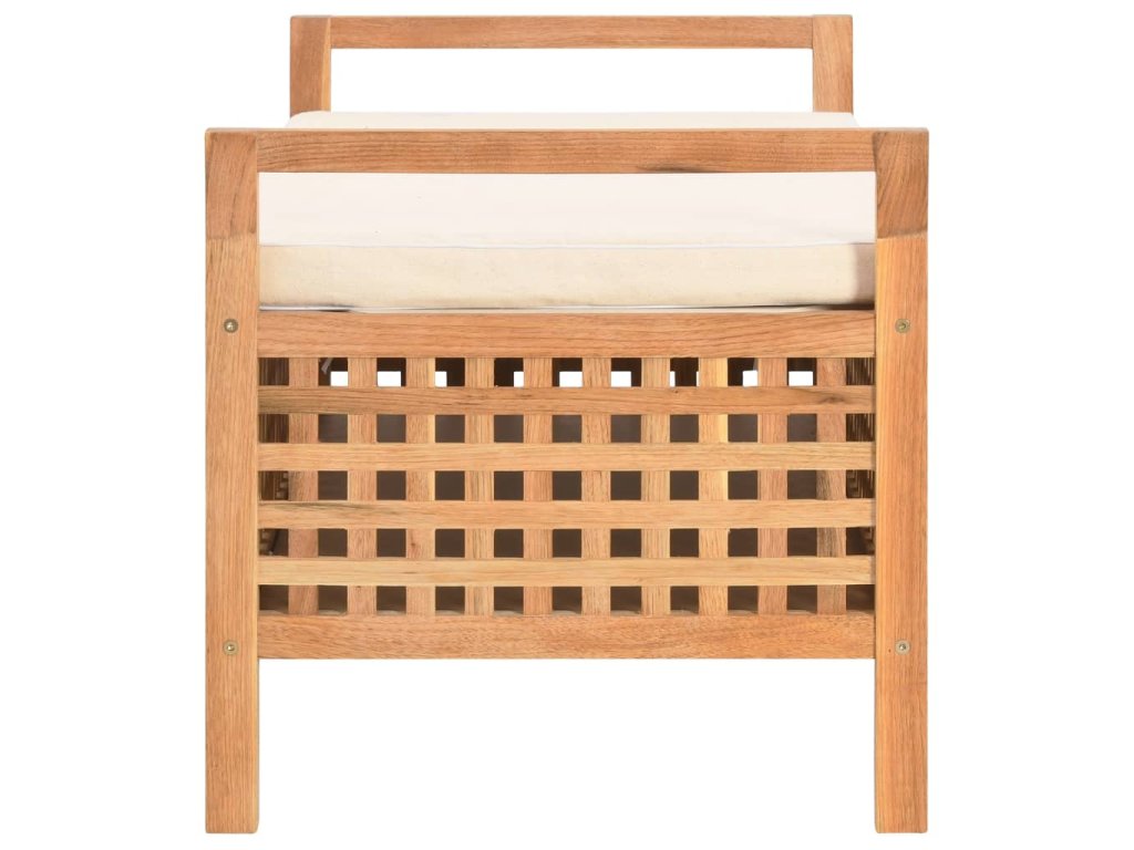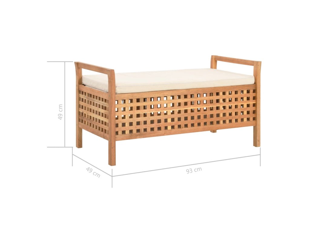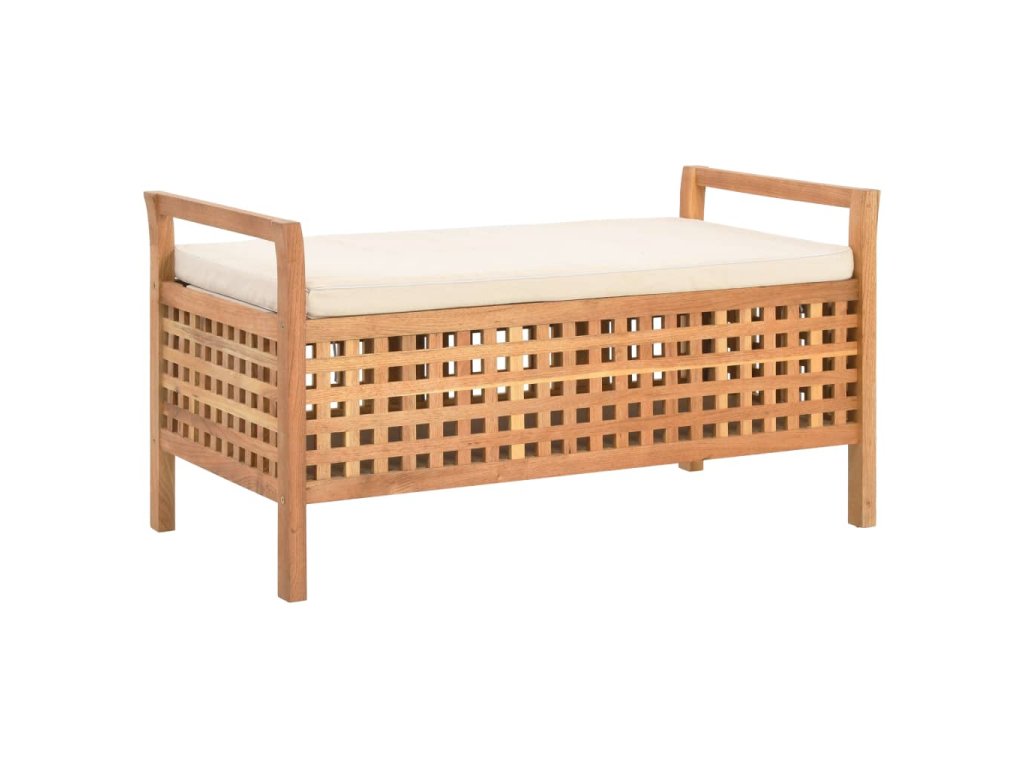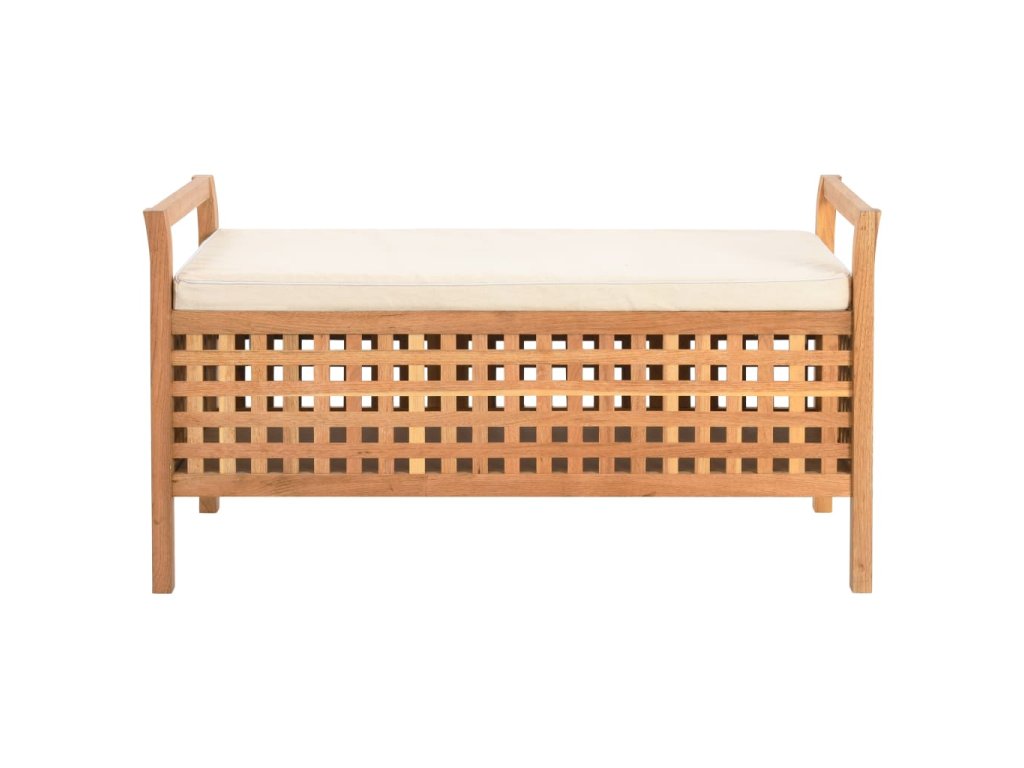Táto lavička je pevná a odolná vďaka tomu, že je vyrobená z masívneho orechového dreva. Má priestrannú odkladaciu priehradku, ktorá bude ideálna na ukladanie uterákov, odevov, vankúšov, hračiek, náradia a ďalšieho príslušenstva. Vďaka mriežkovému dizajnu budú veci vo vnútri dobre vetrané. Hrubý podsedák umožní pohodlné sedenie a jeho návliečka sa dá ľahko odstrániť a oprať.