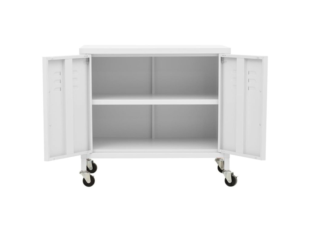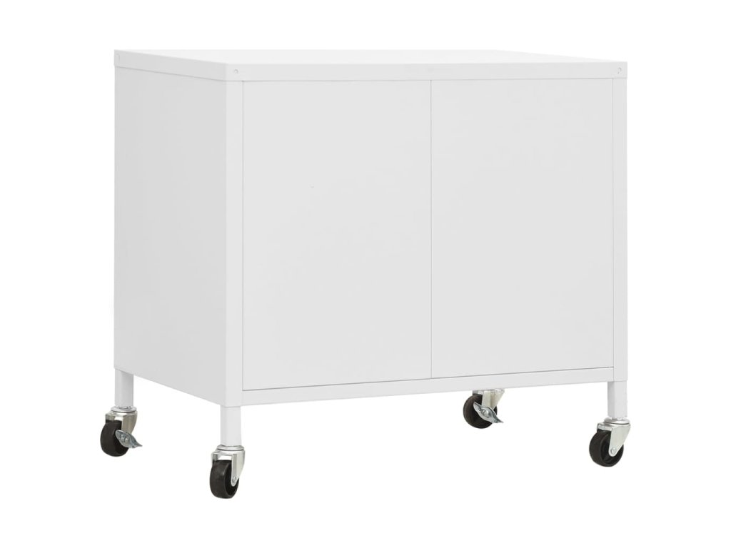Táto úložná skriňa je vyrobená z ocele, takže je pevná a stabilná. Nastaviteľná polica poskytuje dostatok úložného priestoru, aby ste mali DVD, multimediálne zariadenia, knihy a iné drobné predmety usporiadané a na dosah ruky. Skriňa je vybavená štyrmi kolieskami na jednoduché premiestňovanie. Dve predné kolieska majú brzdy, aby sa zabránilo náhodnému pohybu. Okrem toho sa ľahko čistí vlhkou handričkou.