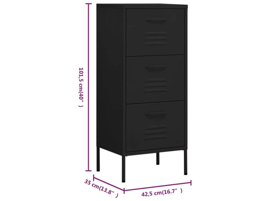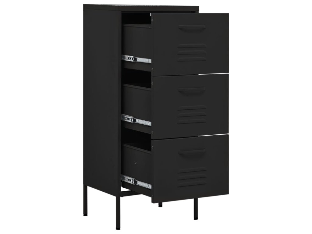 Táto bočná skrinka s oceľovou konštrukciou je pevná a odolná. Na spodnej strane sú vyrovnávače, pomocou ktorých si výšku nastavíte podľa svojich potrieb. Zásuvky sa dajú úplne vysunúť a sú ideálne na uloženie všetkých druhov menších predmetov, ktoré chcete mať na dosah ruky. Zásuvky s guľôčkovými ložiskami zaisťujú plynulé otváranie a zatváranie aj pri zvýšenej záťaži.