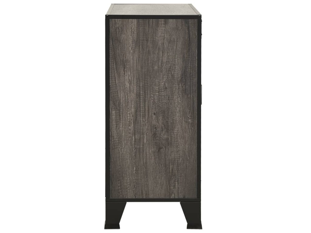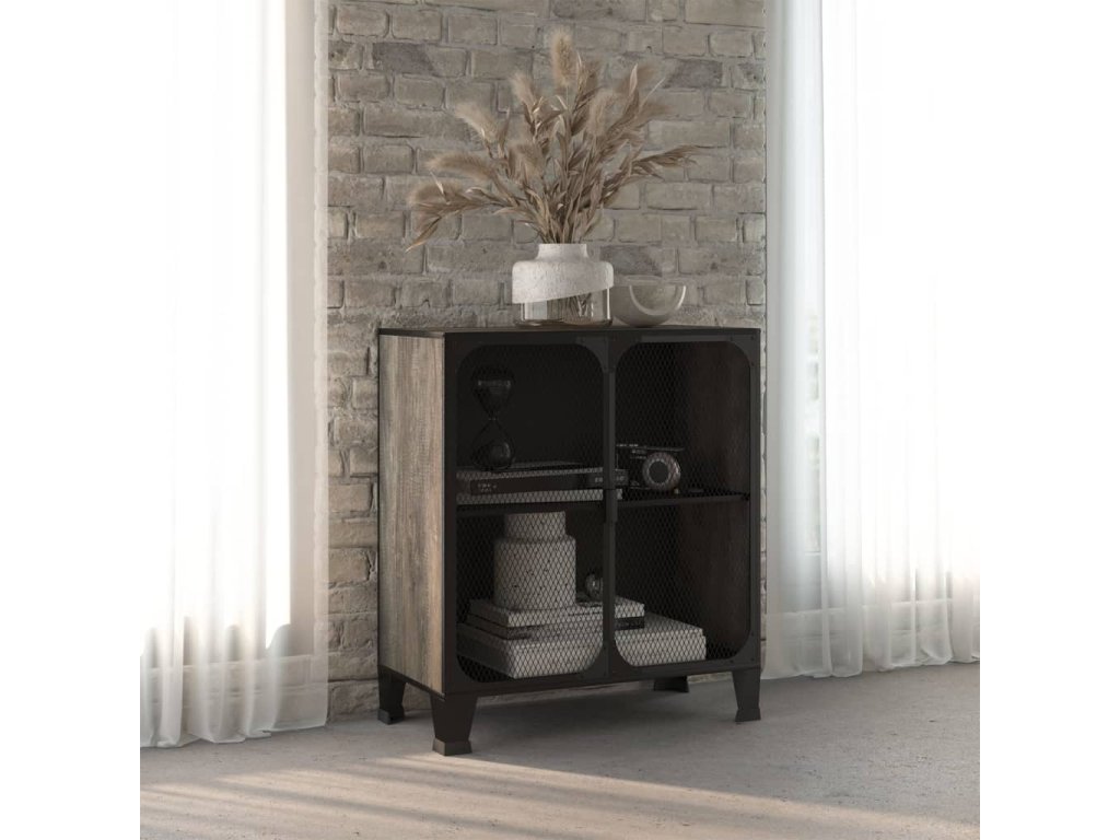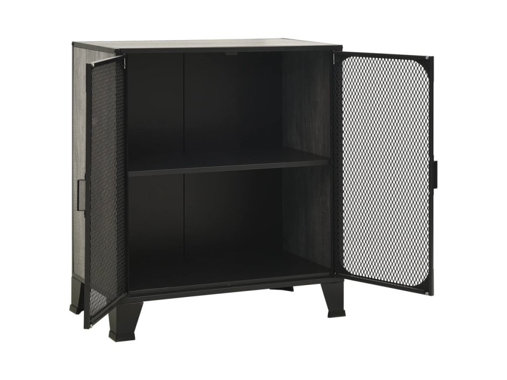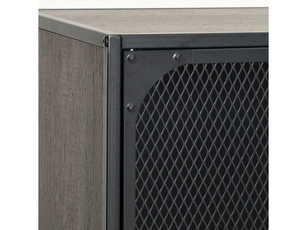 Táto úložná skrinka je vyrobená z kovu a MDF, vďaka čomu je pevná a stabilná. Vo vnútri má policu, ktorá poskytuje dostatok úložného priestoru na uloženie vašich DVD, multimediálnych zariadení, kníh a malých predmetov. Vďaka kombinácii kovového kovania a sieťových dvierok táto skrinka dodá vašej obývačke alebo spálni mestskú industriálnu atmosféru. Navyše sa ľahko čistí vlhkou handričkou.