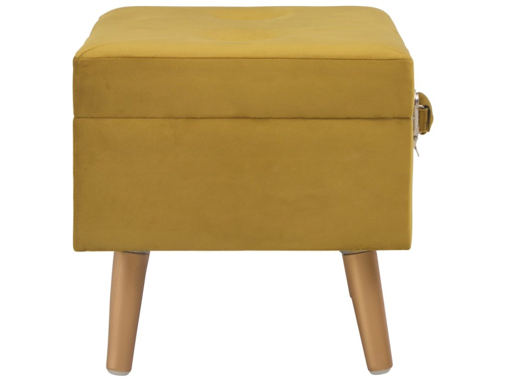 Táto stolička je čalúnená zamatom a pre väčšie pohodlie je aj polstrovaná molitanom. Vďaka pevným dreveným nohám je podnožka stabilná a odolná. Nohy jej dodajú elegantný nádych. Obsahuje aj úložný priestor pod sedadlom ako dodatočné úložné riešenie.