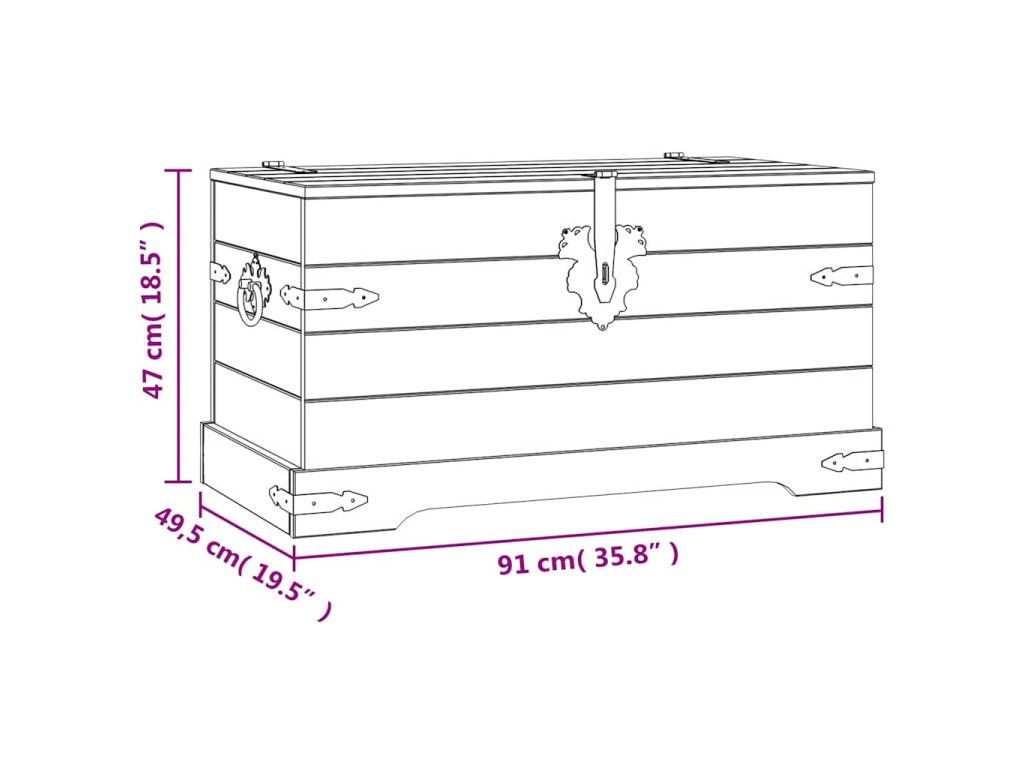 Truhlica má robustné čierne kovové detaily, ktoré zvyšujú jej odolnosť a dodávajú jej retro štýl. Má pohodlné rukoväte a dá sa uzamknúť. Dokonca ju môžete použiť aj ako konferenčný alebo bočný stolík.