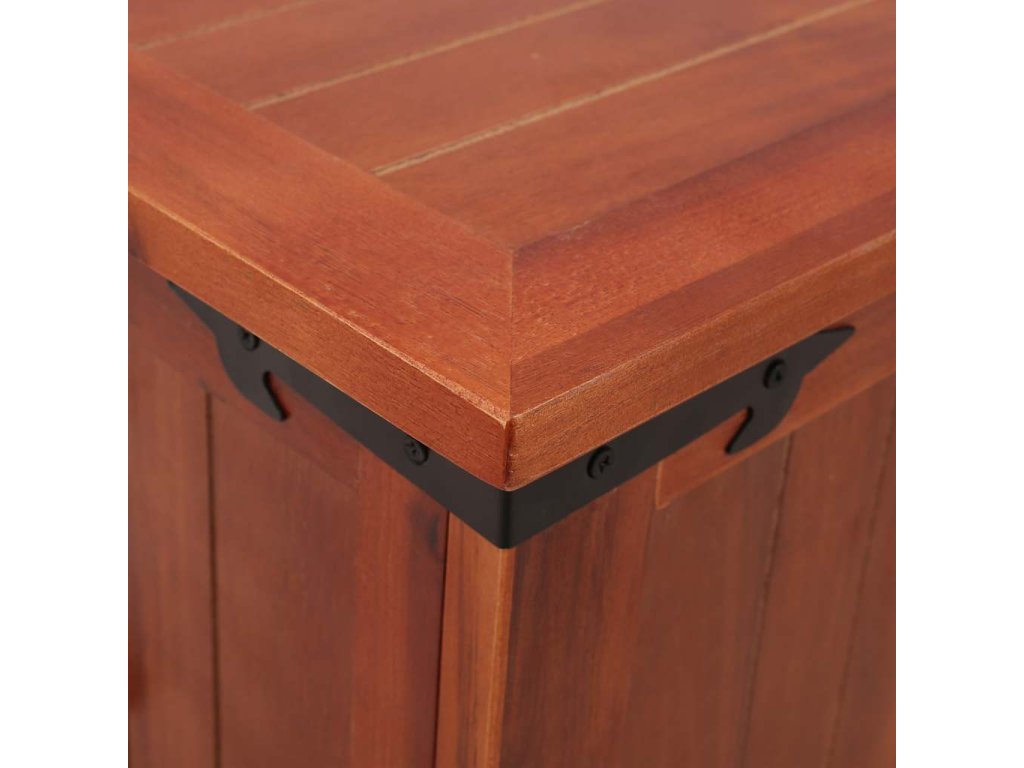 Úložný box poskytuje množstvo úložného priestoru na odkladanie oblečenia, časopisov, kníh, náradia a iných potrieb. Na prednej strane sa nachádza západka a na oboch stranách dve rúčky. Drevený box so stabilnou a rovnou vrchnou doskou sa dá využívať aj ako konferenčný stolík, stolík ku gauču, stolík do obývačky, príručný stolík, odkladací stolík a podobne. Úložná truhlica je ručne vyrobená z akáciového masívu. Vďaka kvalitnému remeselnému opracovaniu a krásnej textúre dreva je každý kus nábytku výnimočný a trochu odlišný od ostatných.