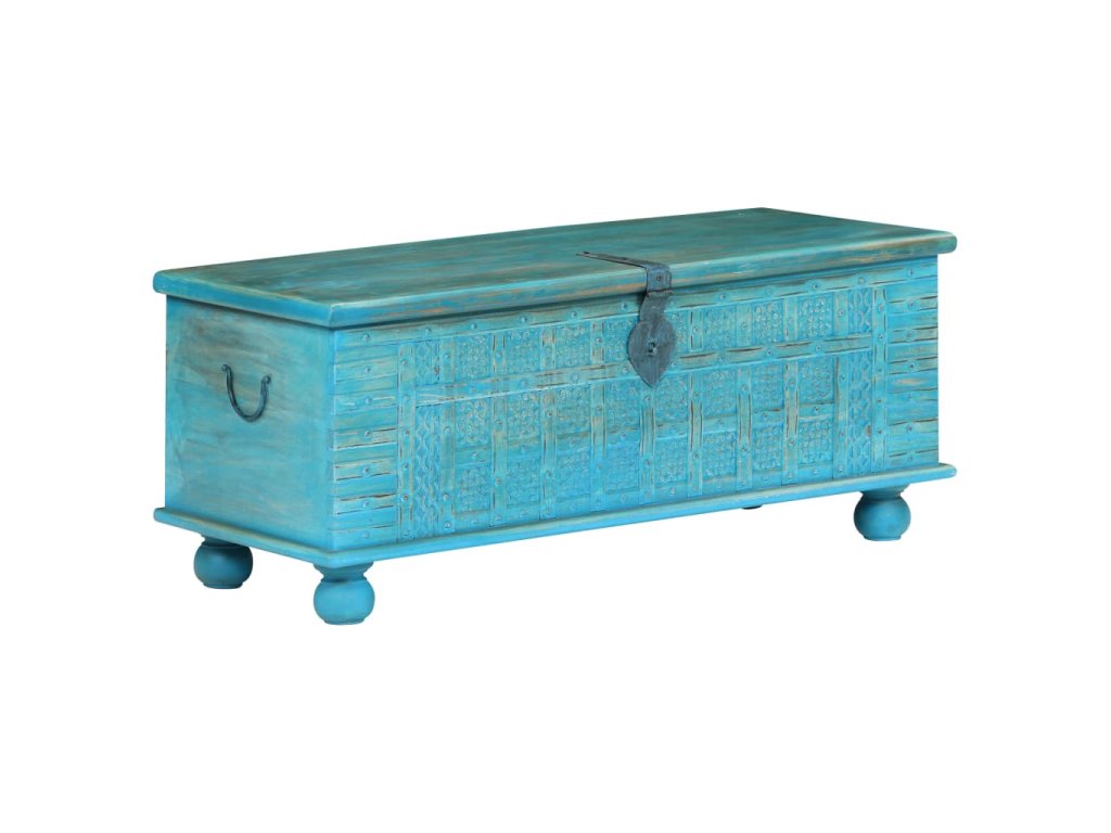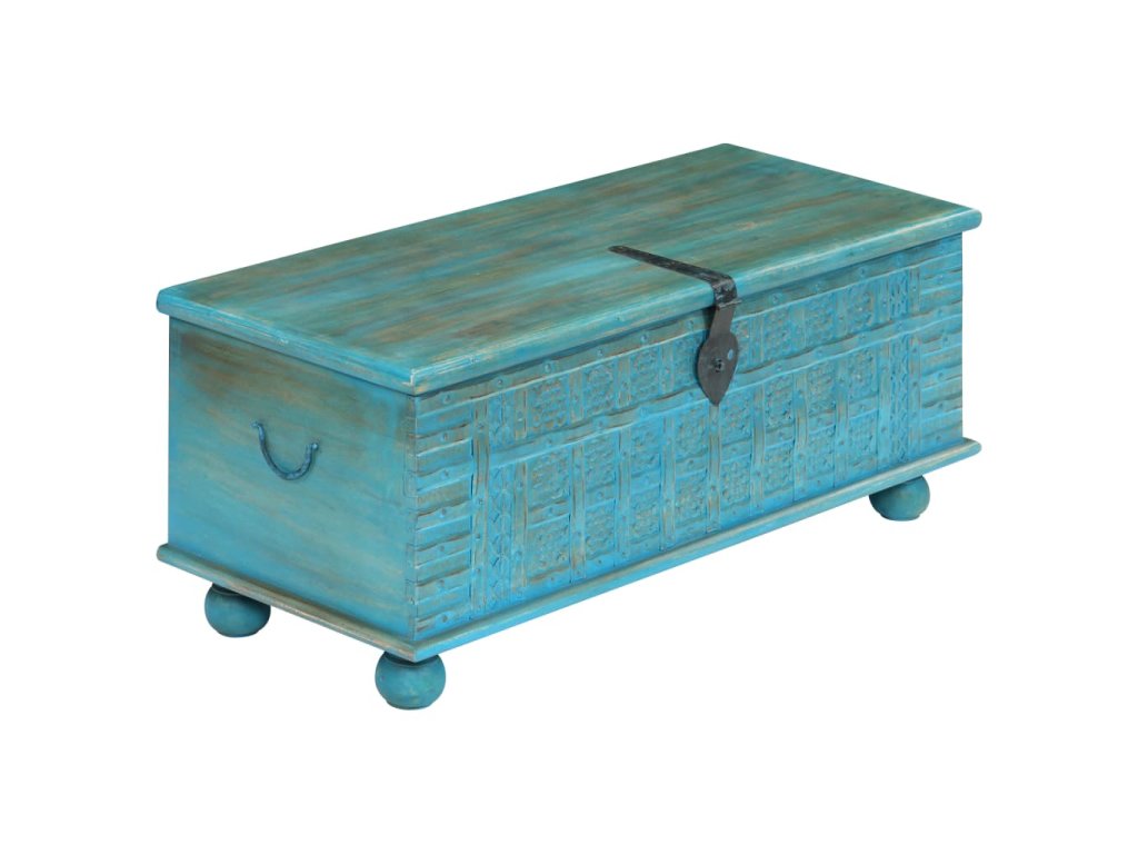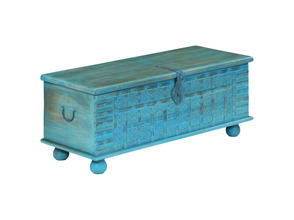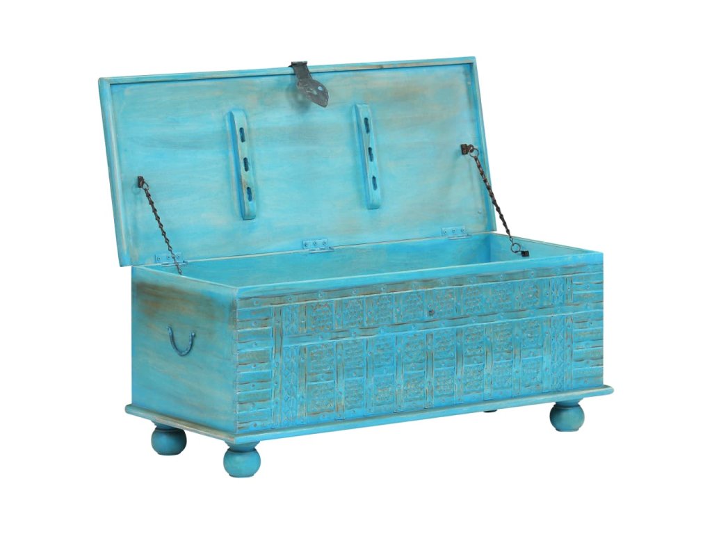 Truhlica je ručne vyrobená z mangovníkového dreva, ktoré je pevné, stabilné, odolné a krásne a remeselné spracovanie mu dodáva veľkolepý retro štýl. Každý krok výrobného procesu sa vykonáva s najväčšou starostlivosťou, či už ide o leštenie, natieranie alebo lakovanie. Vďaka remeselnému spracovaniu a krásnej kresbe dreva je každá úložná truhlica jedinečná a trochu odlišná od ostatných kusov. Veľká vrchná doska môže byť použitá aj na umiestnenie dekoratívnych predmetov.