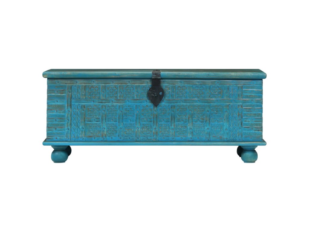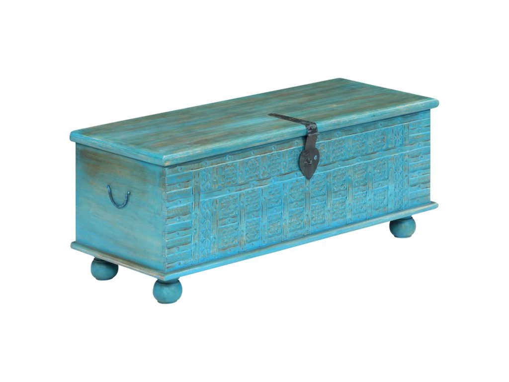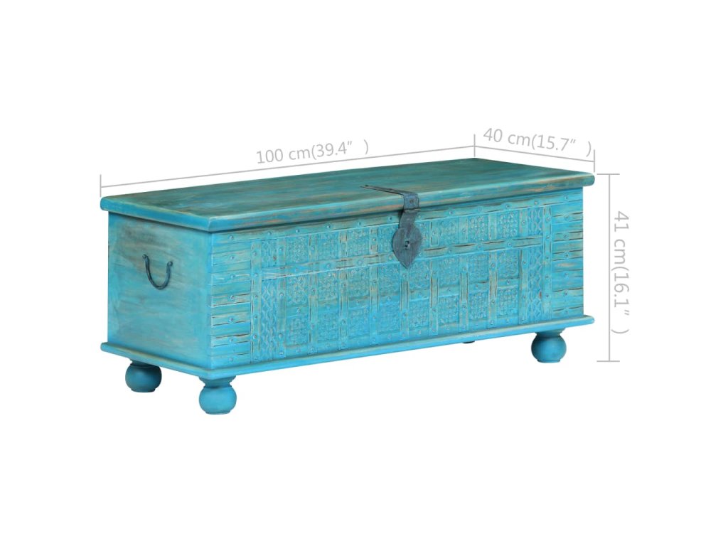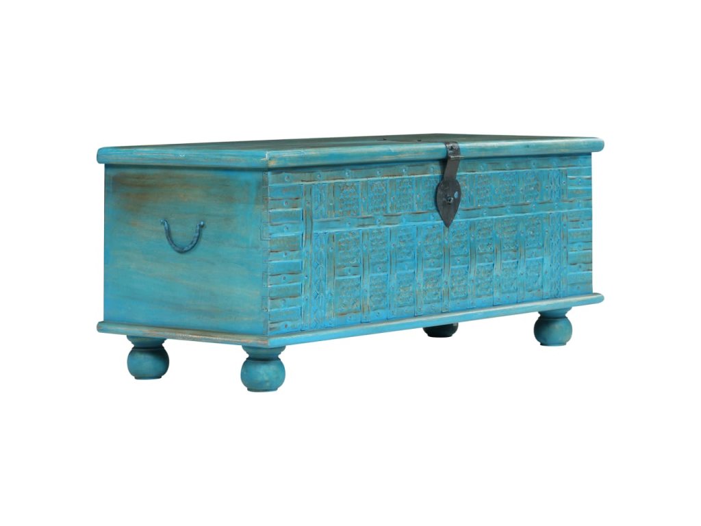 Truhlica je ručne vyrobená z mangovníkového dreva, ktoré je pevné, stabilné, odolné a krásne a remeselné spracovanie mu dodáva veľkolepý retro štýl. Každý krok výrobného procesu sa vykonáva s najväčšou starostlivosťou, či už ide o leštenie, natieranie alebo lakovanie. Vďaka remeselnému spracovaniu a krásnej kresbe dreva je každá úložná truhlica jedinečná a trochu odlišná od ostatných kusov. Veľká vrchná doska môže byť použitá aj na umiestnenie dekoratívnych predmetov.