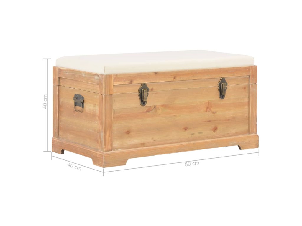 Priestranná truhlica sa dá použiť na uloženie hračiek, náradia a iného príslušenstva. Táto truhlica je vyrobená z MDF a je mimoriadne odolná. Vyznačuje sa robustnou štruktúrou, ktorá si vyžaduje iba minimálnu údržbu. Vďaka mäkkému čalúnenému vankúšu na vrchu je táto lavička do predsiene veľmi pohodlná. Na stranách má dve ozdobné rúčky, aby ste ju mohli jednoducho presúvať. Úložný box je už zmontovaný; nevyžaduje sa žiadna montáž.