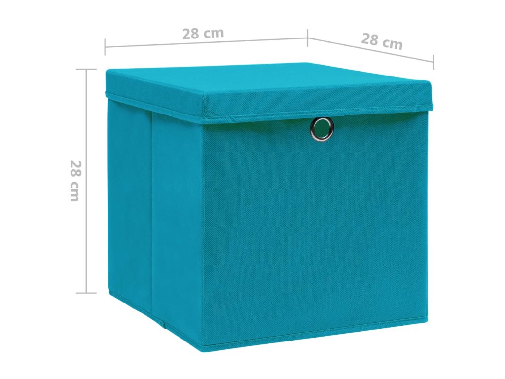 Úložné boxy sú vyrobené z netkanej textílie, ktorá je mimoriadne trvácna. Každý box poskytuje množstvo priestoru na odkladanie šálov, ponožiek, spodného prádla a podobne. Keď úložné boxy nepoužívate, stačí ich jednoducho poskladať, aby nezaberali veľa miesta. Každý box má praktické kovové očko, ktoré pôsobí elegantne a poslúži na to, aby ste box mohli bez problémov vytiahnuť zo skrine. Boxy sa navyše dodávajú s vekami, aby vaše veci zostali čisté a nesadal na ne prach.