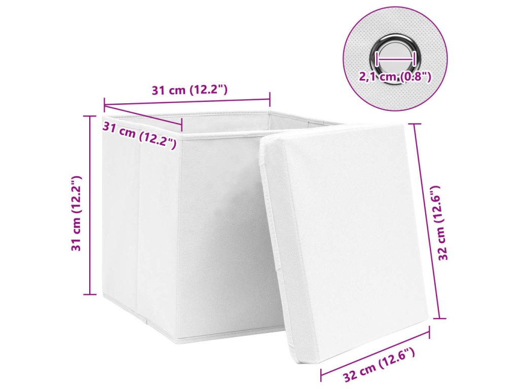 Praktické úložné boxy sú vyrobené z netkanej textílie, vďaka čomu sú ekologické a veľmi odolné. Na zaistenie čistoty všetkých vecí je na každom boxe uzáver. Každý úložný box je tiež vybavený praktickým kovovým očkom, za ktoré môžete box vytiahnuť z vášho šatníka, police, skrinky atď. Úložné boxy sa dajú sklopiť, ak sa nepoužívajú, aby sa ušetril priestor.