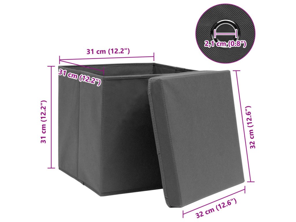 Praktické úložné boxy sú vyrobené z netkanej textílie, ktorá je veľmi trvácna. Každý box má veko, aby odložené veci zostali čisté. Každý úložný box je tiež vybavený praktickým kovovým očkom, pomocou ktorého sa dá jednoducho vytiahnuť zo šatníka, police, skrinky atď. Úložné boxy sa dajú poskladať, keď sa nepoužívajú, aby nezaberali veľa miesta.