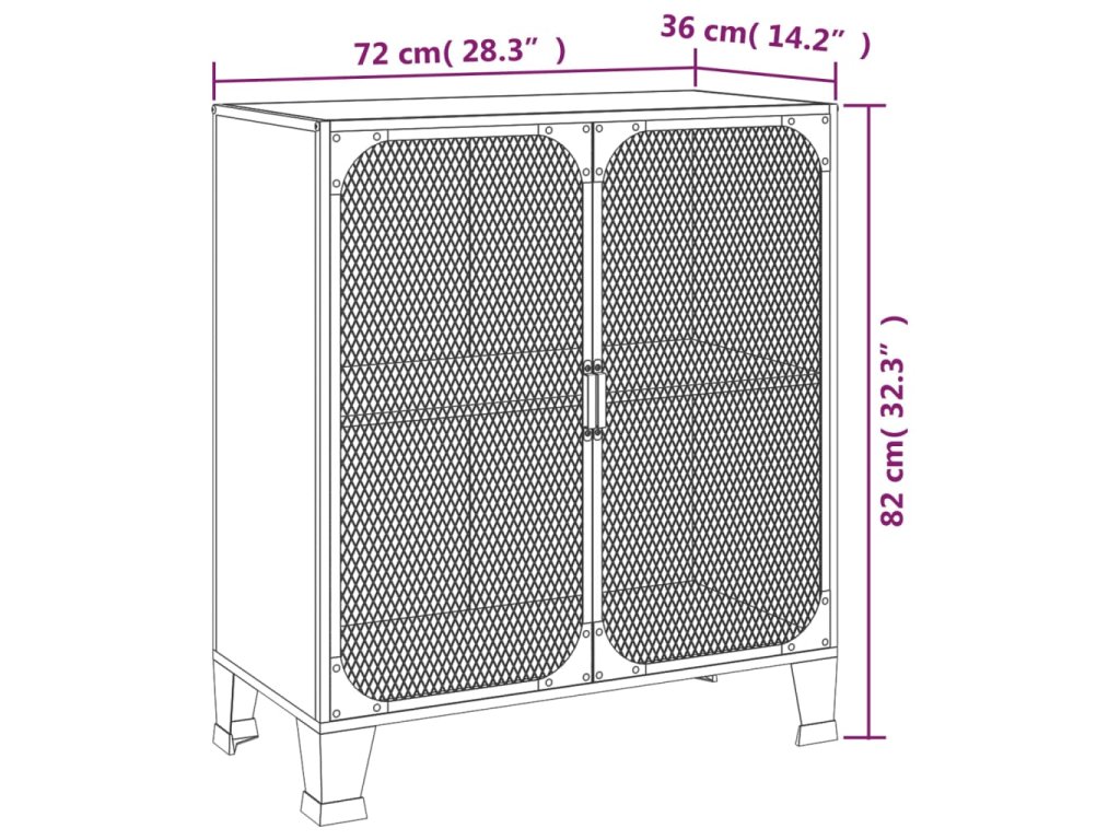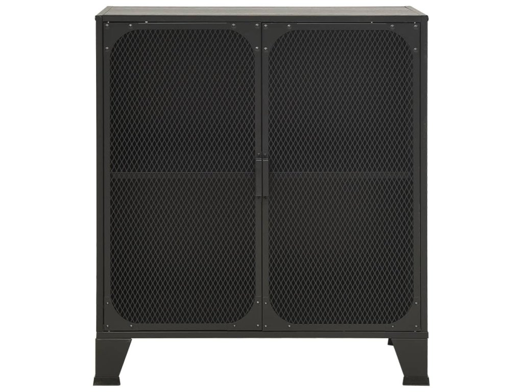 Táto úložná skrinka je vyrobená z kovu a MDF, vďaka čomu je pevná a stabilná. Vo vnútri má policu, ktorá poskytuje dostatok úložného priestoru na uloženie vašich DVD, multimediálnych zariadení, kníh a malých predmetov. Vďaka kombinácii kovového kovania a sieťových dvierok táto skrinka dodá vašej obývačke alebo spálni mestskú industriálnu atmosféru. Navyše sa ľahko čistí vlhkou handričkou.