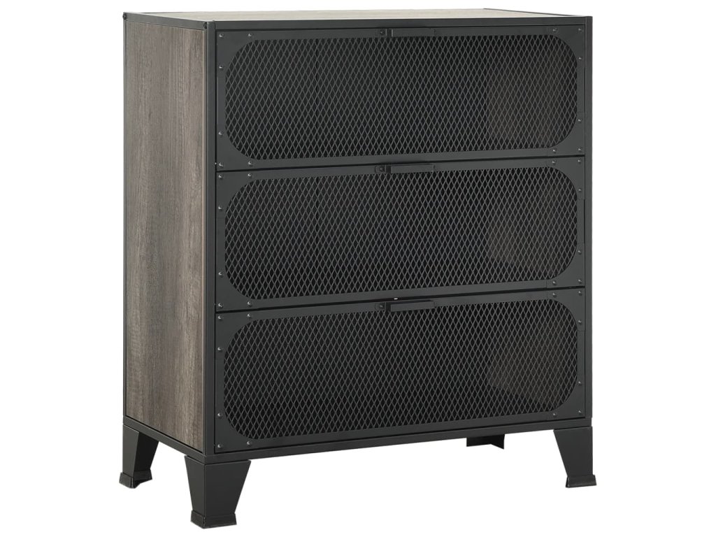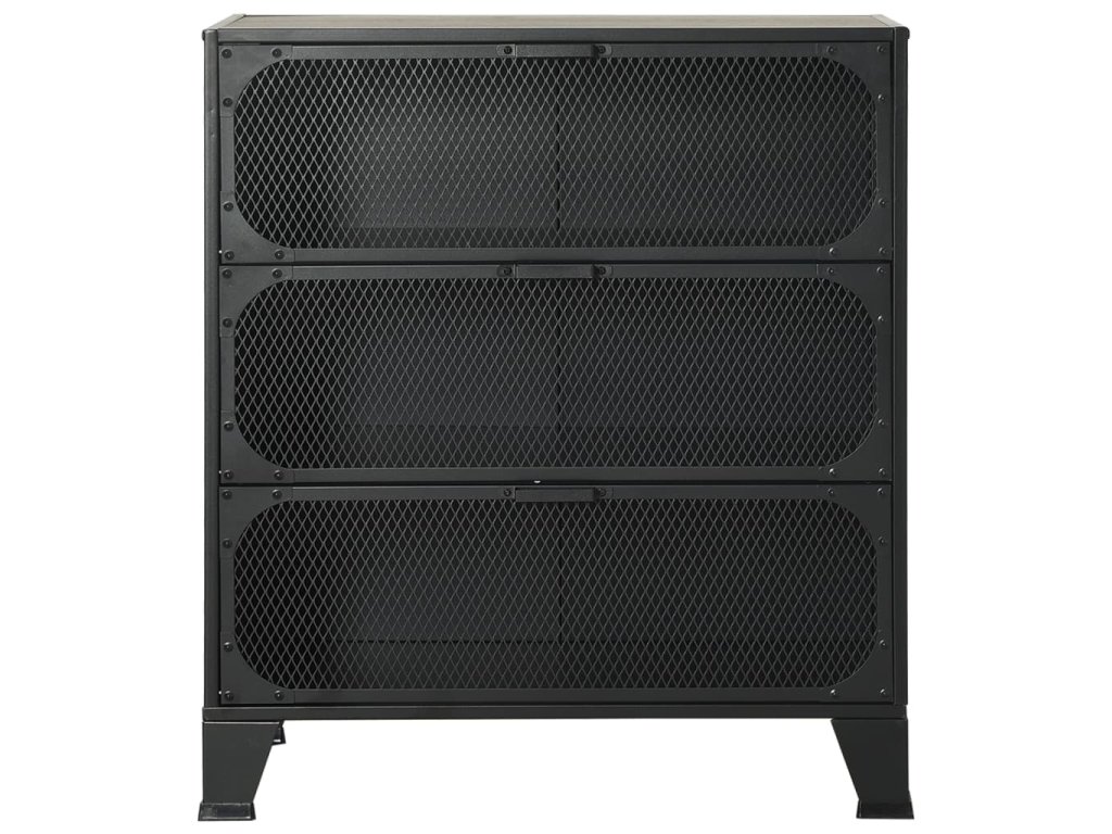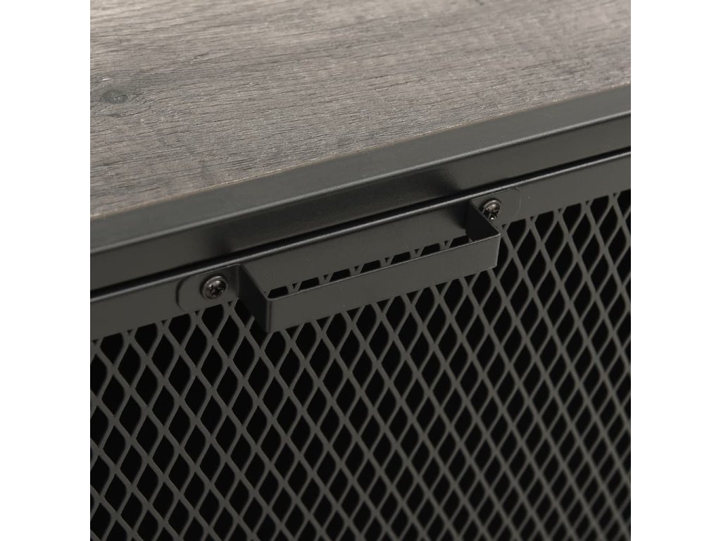 Táto úložná skrinka je vyrobená z kovu a MDF, vďaka čomu je pevná a stabilná. Vo vnútri má 2 police, ktoré poskytujú dostatok úložného priestoru na uloženie vašich DVD, multimediálnych zariadení, kníh a malých predmetov. Vďaka kombinácii kovového kovania a sieťových dvierok táto skrinka dodá vašej obývačke alebo spálni mestskú industriálnu atmosféru. Navyše sa ľahko čistí vlhkou handričkou.