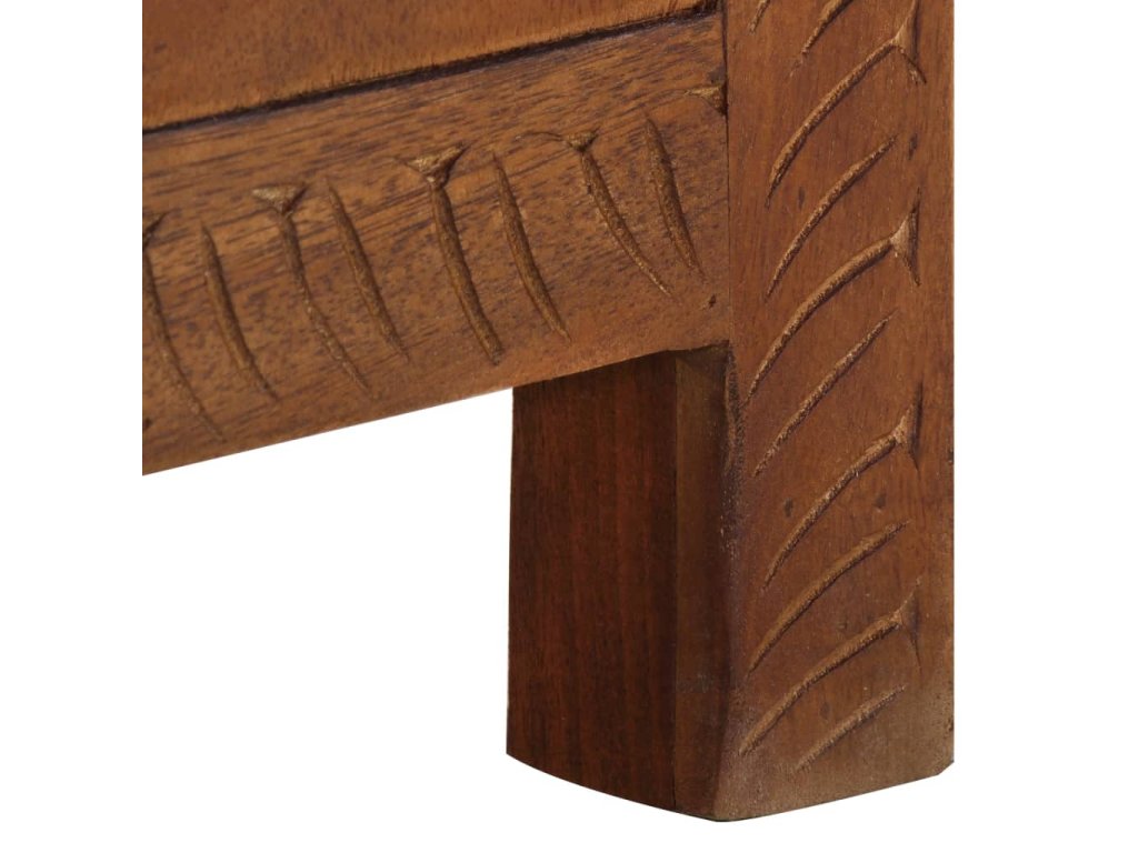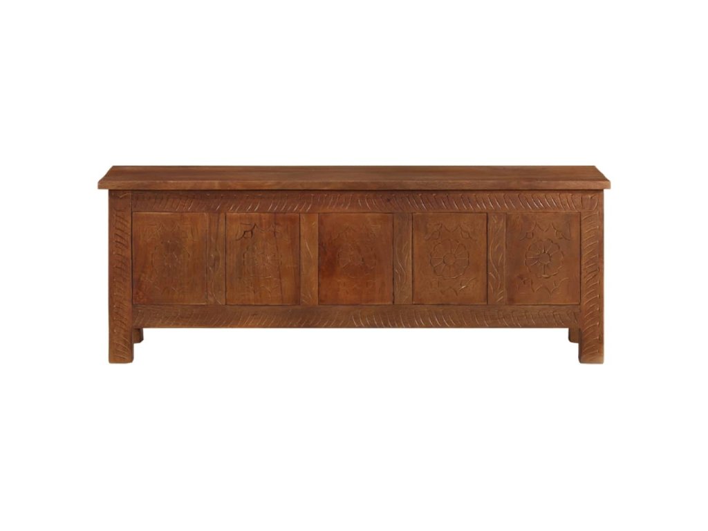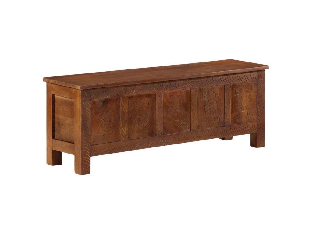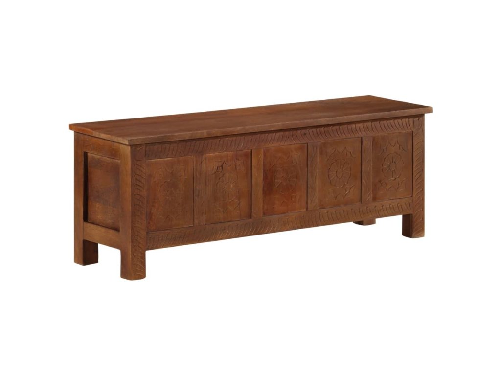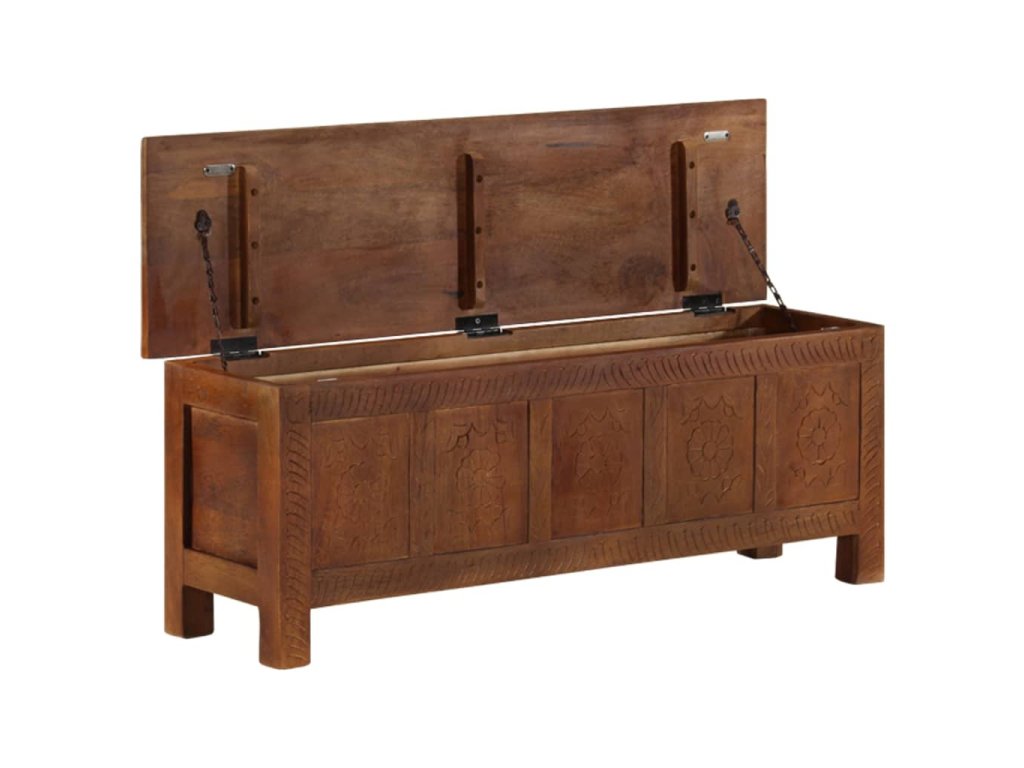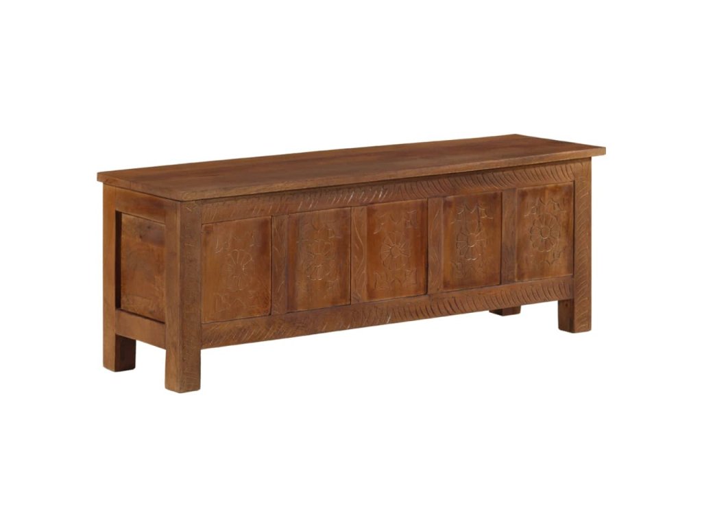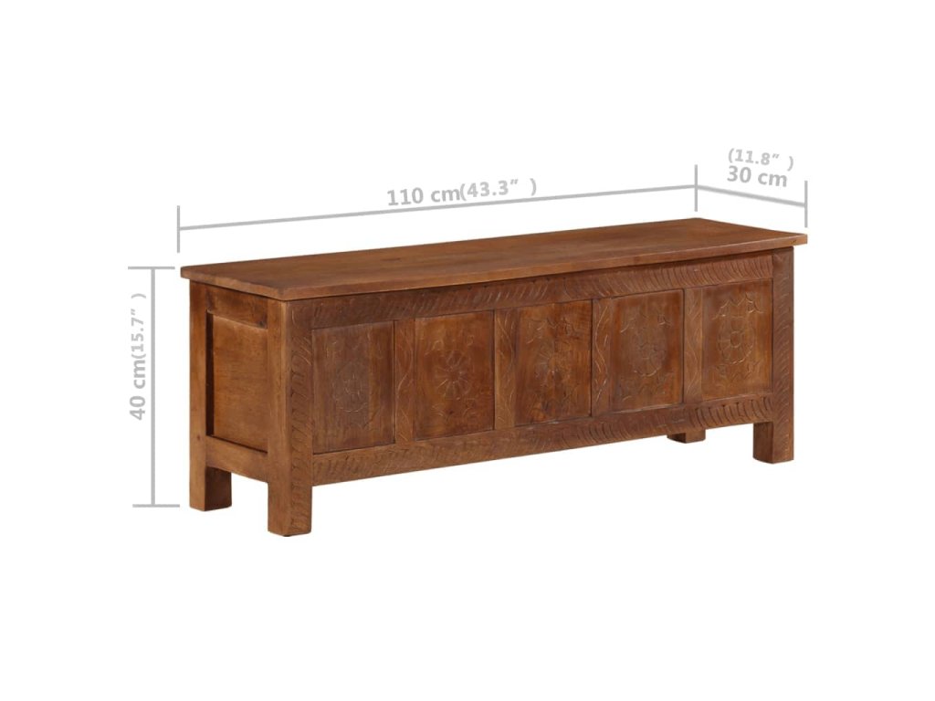 Tento úložný box je vyrobený z masívneho mangovníkového dreva, čo je tvrdé drevo s hustou štruktúrou. Surové mangovníkové drevo je dostatočne pevné na to, aby unieslo aj ťažké predmety, no zároveň odoláva každodennému opotrebovaniu. V dôsledku toho je táto krásne navrhnutá úložná lavica mimoriadne stabilná, trvácna a pútavá. Box je ručne vyrobený. Vďaka peknej štruktúre dreva je každý kus tohto nábytku jedinečný a mierne odlišný od ostatných kusov. Ozdobný box má 1 skrinku, ktorá poskytuje dostatok priestoru na uloženie vašich multimediálnych zariadení, kníh, topánok a rôznych ďalších predmetov.