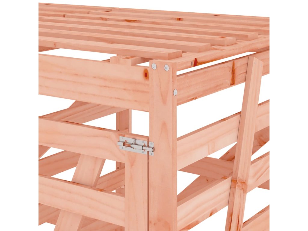 - Masívne douglasové drevo: Vonkajší úložný priestor je vyrobený z masívneho douglasového dreva pre pevnosť a odolnosť. Masívne douglasové drevo je vysoko odolné drevo, ktoré sa skvele hodí do exteriéru. Douglasové drevo je tiež pevné a vyžaduje si len malú údržbu aj pod vplyvom počasia.
