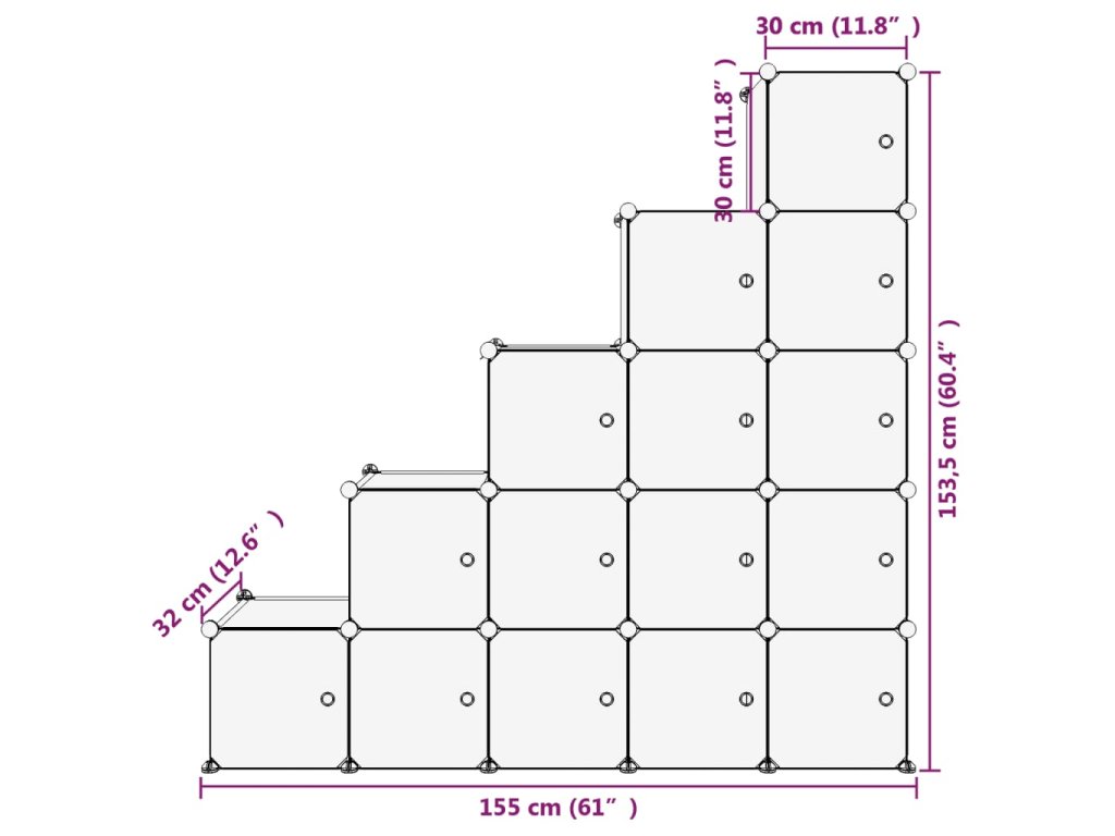 Tento všestranný organizér v tvare úložných kociek je navrhnutý tak, aby čo najlepšie využil obmedzený priestor a uspokojil úložné potreby.
