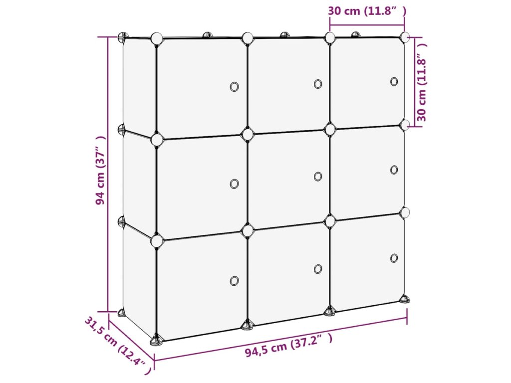 - Veľký úložný priestor: Táto plastová skriňa obsahuje 9 modulárnych kociek. Dostatok úložného priestoru uľahčuje usporiadanie vecí.