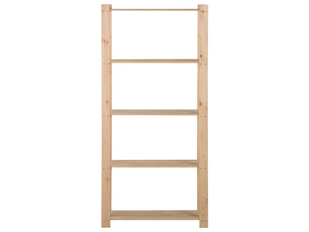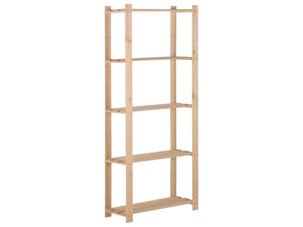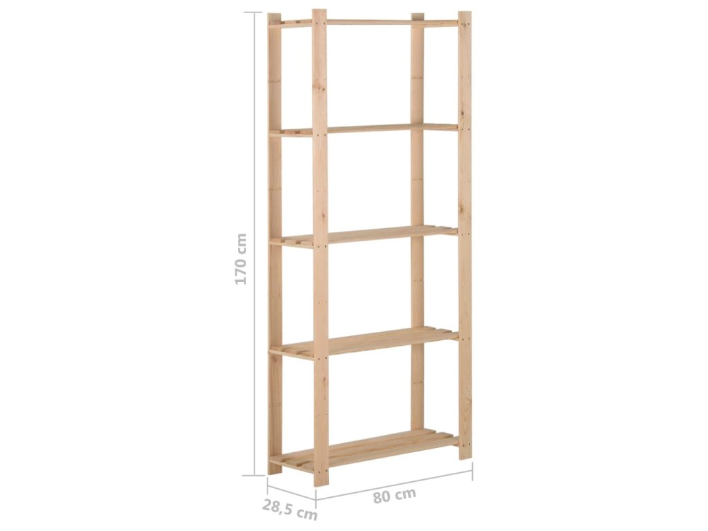 Úložná polica je vyrobená z masívneho borovicového dreva a je mimoriadne stabilná a odolná. Môžete si ponechať jej prirodzenú farbu alebo ju doplniť náterom či inou povrchovou úpravou vo vašej obľúbenej farbe. Vďaka päťúrovňovej konštrukcii poskytuje táto regálová jednotka dostatok priestoru na prehľadné usporiadanie všetkých predmetov.