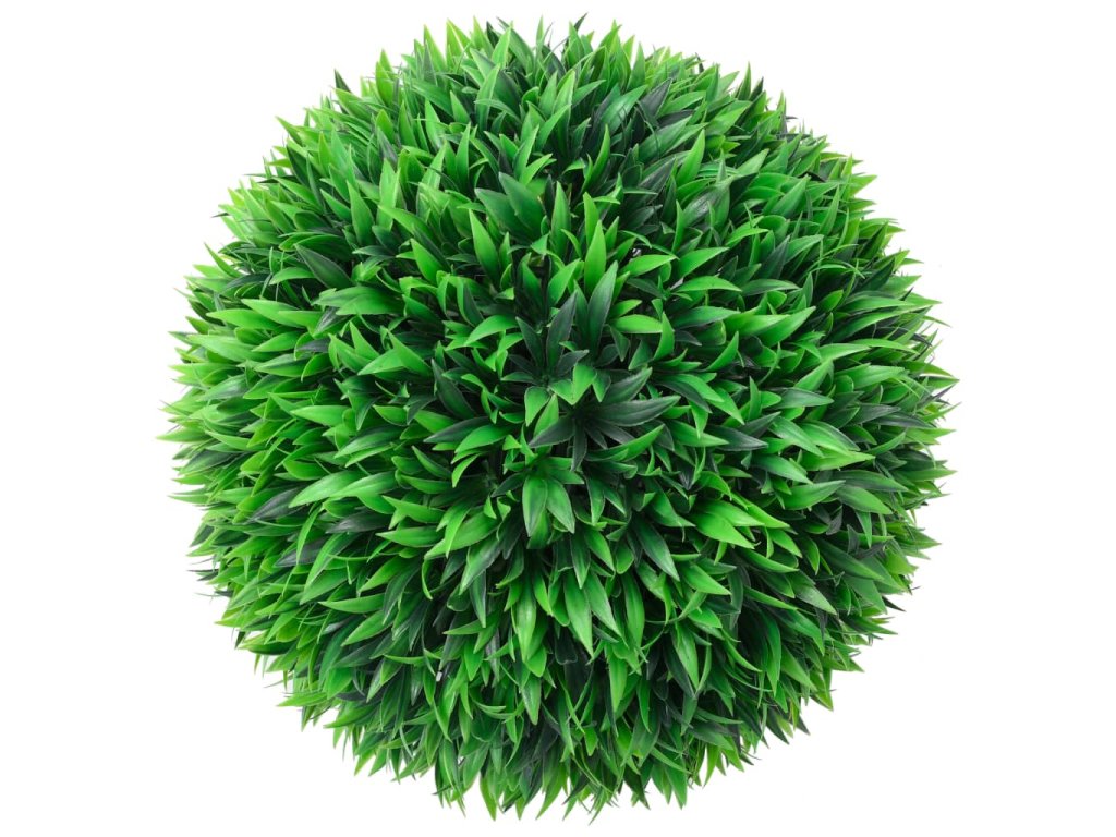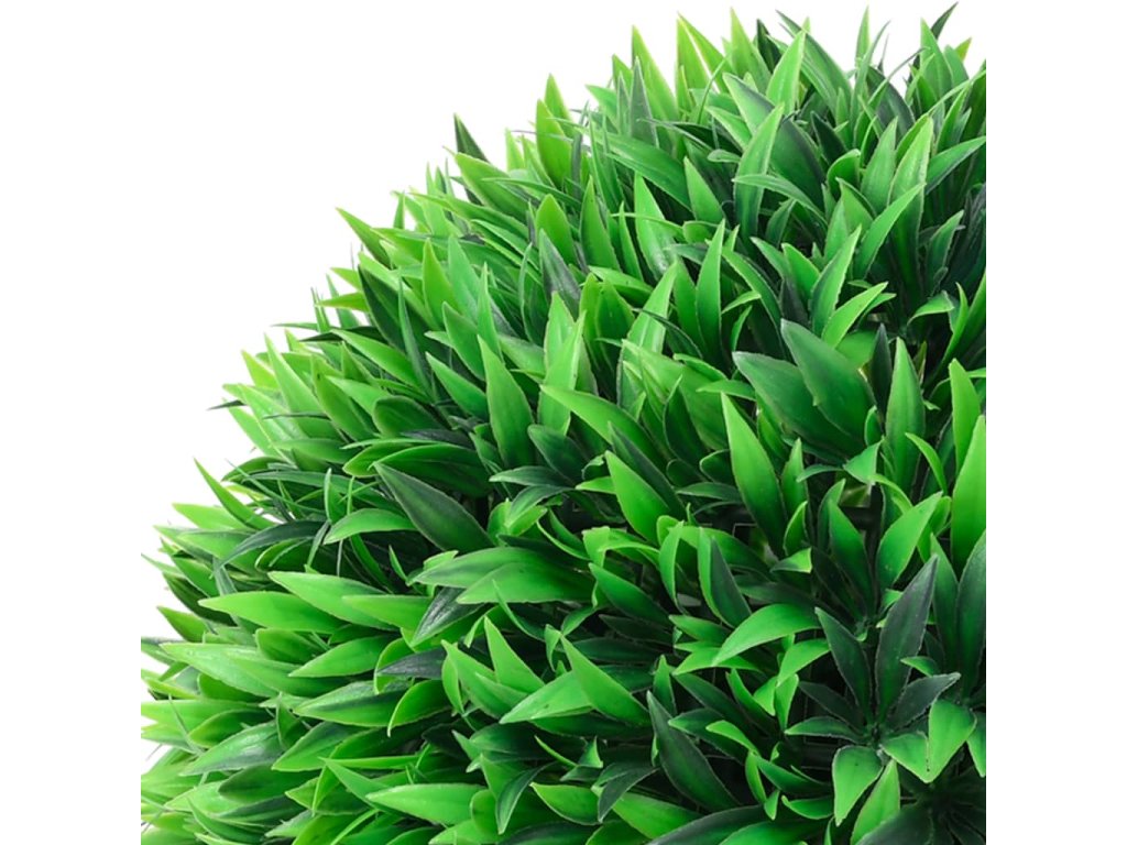 Umelý krušpán v tvare gule môžete tiež ozdobiť svetelnou reťazou, aby ste vyzdobili svoj interiér alebo svoju záhradu. Umelá rastlina vyrobená z polyetylénu je odolná voči poveternostným vplyvom a vhodná pre dlhodobé použitie v exteriéri. Umelá tráva v tvare gule má sviežu zmiešanú zelenú farbu a prírodnú textúru, a vyzerá autenticky.