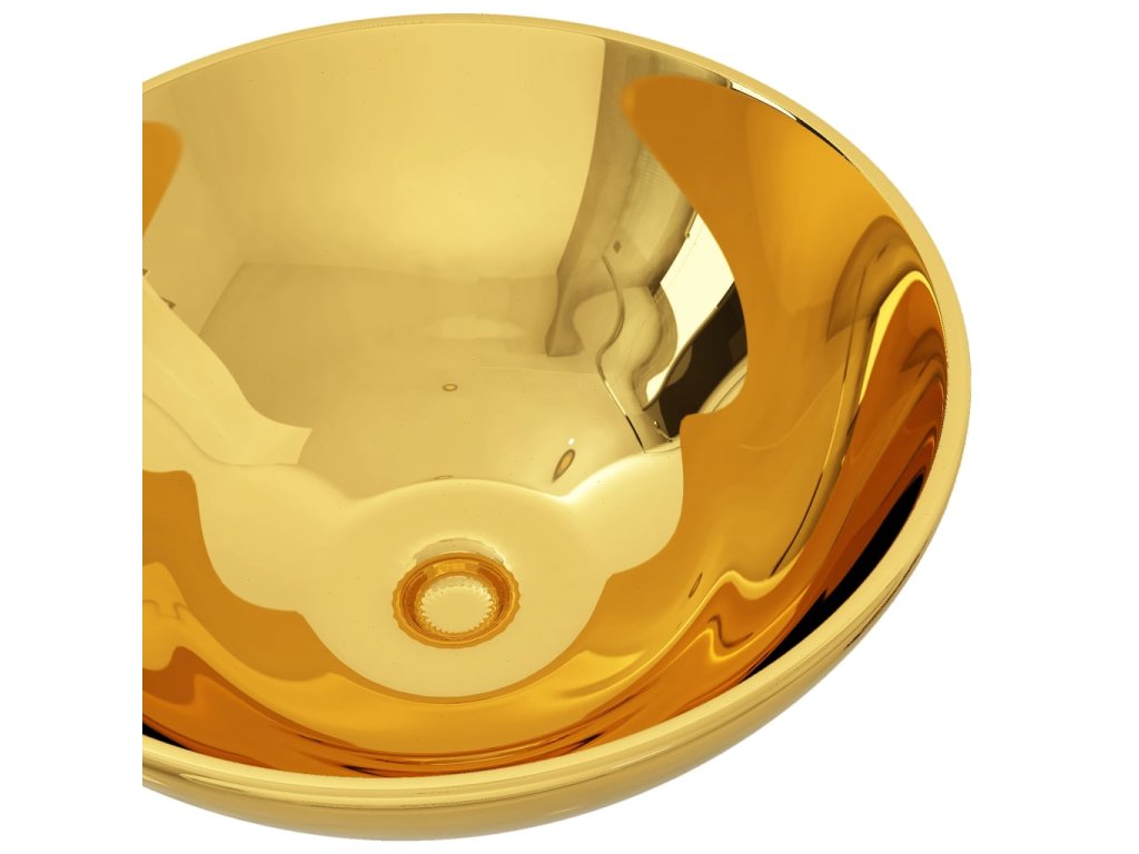 Umývadlo bude mať vo vašom obytnom priestore praktickú, ako aj ozdobnú funkciu. Vďaka svojmu trendovému a modernému zlatému žiarivému dizajnu sa bude toto umývadlo hodiť do každého interiéru. Umývadlo je vyrobené z keramiky a ľahko sa čistí. Jeho vysoko lesklý povrch dodá vašej kúpeľni šarmantný nádych.
