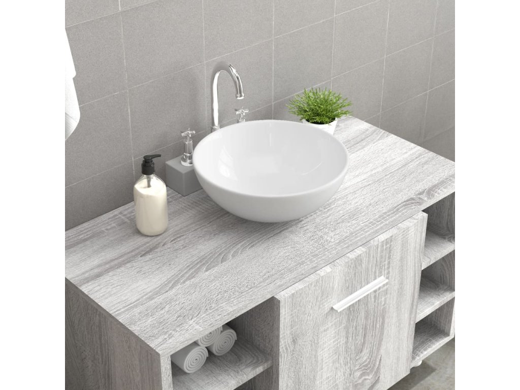 - Keramický materiál: Umývadlo na vrch skrinky je vyrobené z keramiky a je odolné voči poškriabaniu a korózii pre dlhú životnosť.
