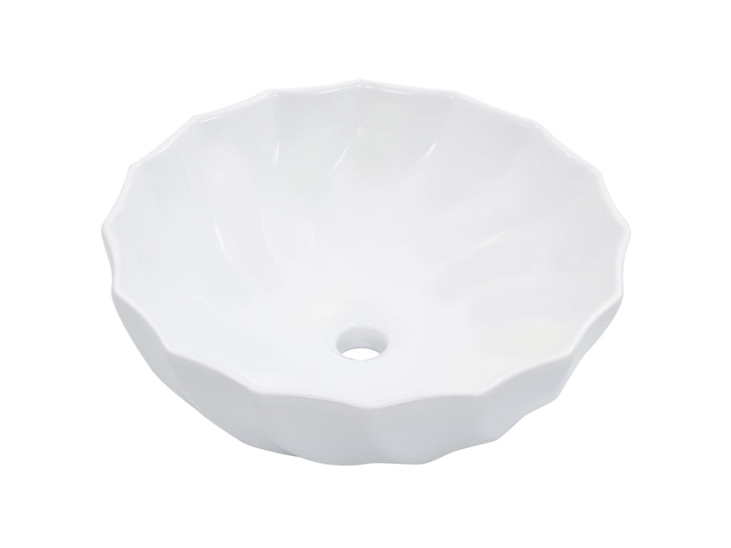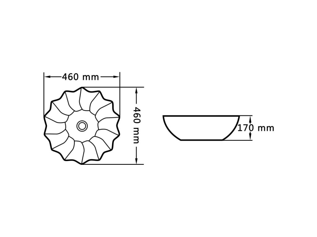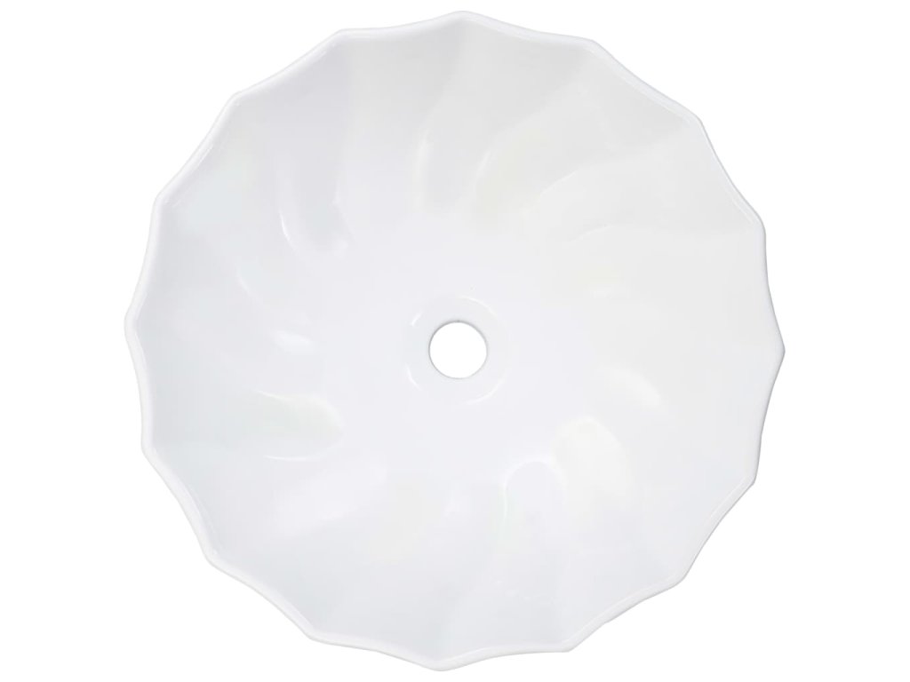 Toto okrúhle umývadlo s kvetinovým dizajnom je vyrobené z keramiky a bude vkusným a nadčasovým doplnkom každej kúpeľne, umyvárne, šatne alebo práčovne.