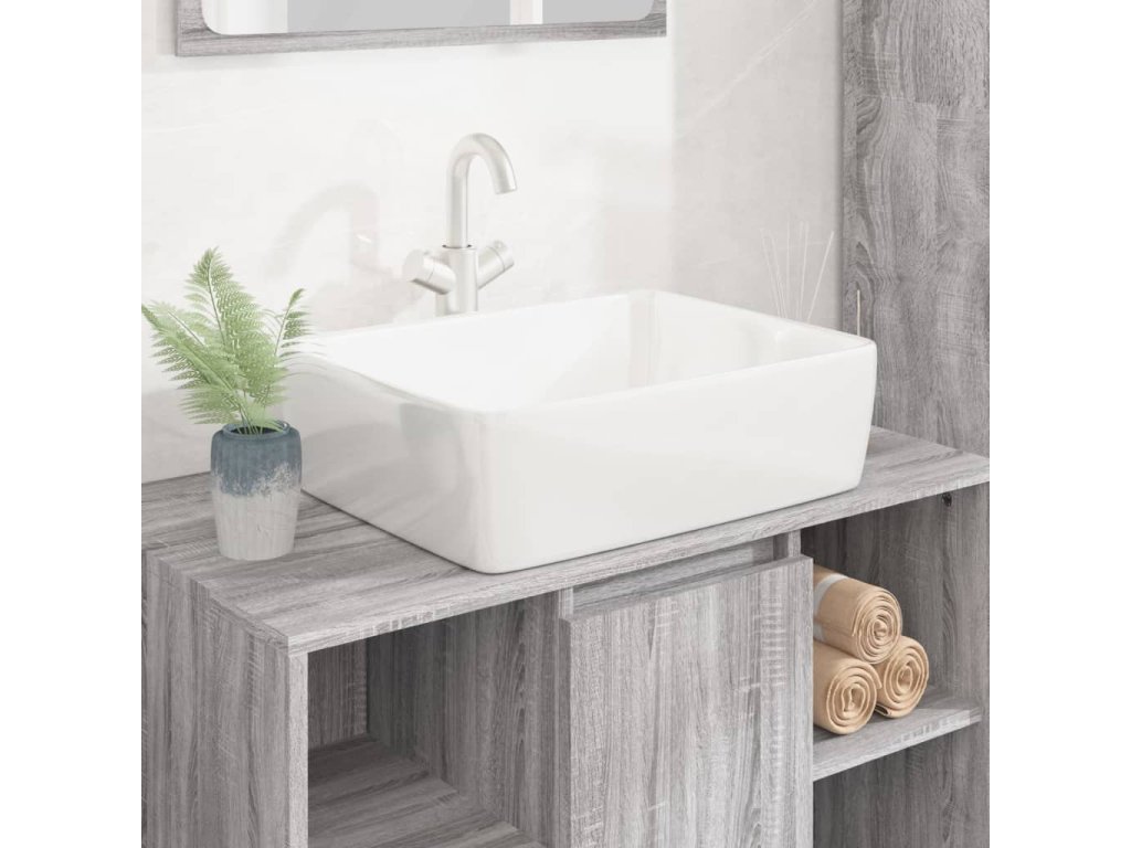 Toto obdĺžnikové umývadlo je vyrobené z keramiky a predstavuje moderný a nadčasový doplnok do kúpeľne, umyvárne, šatne či toalety.