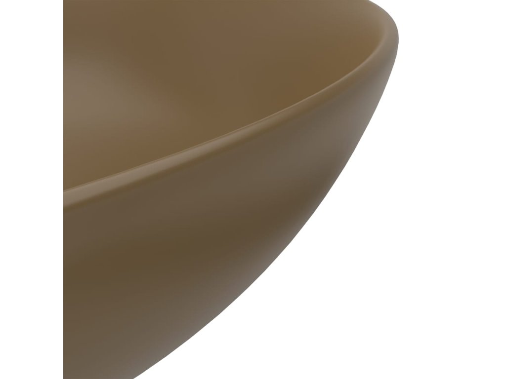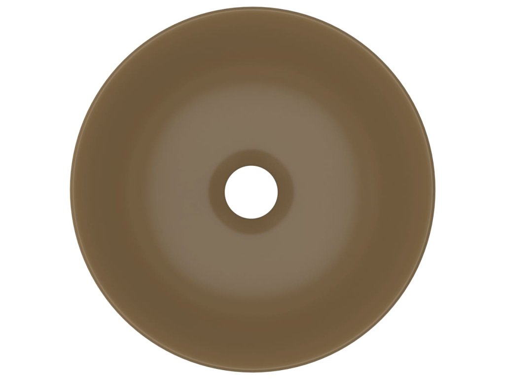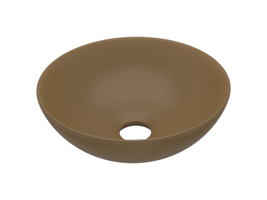 Kvalitná keramika s matným povrchom sa dá ľahko očistiť. Umývadlo nemá prepad a inštaluje sa na umývadlovú dosku, a preto pôsobí čisto a úhľadne. V spodnej časti umývadla sa nachádza odtokový otvor s priemerom 4,5 cm. Upozorňujeme, že batéria nie je súčasťou balenia.