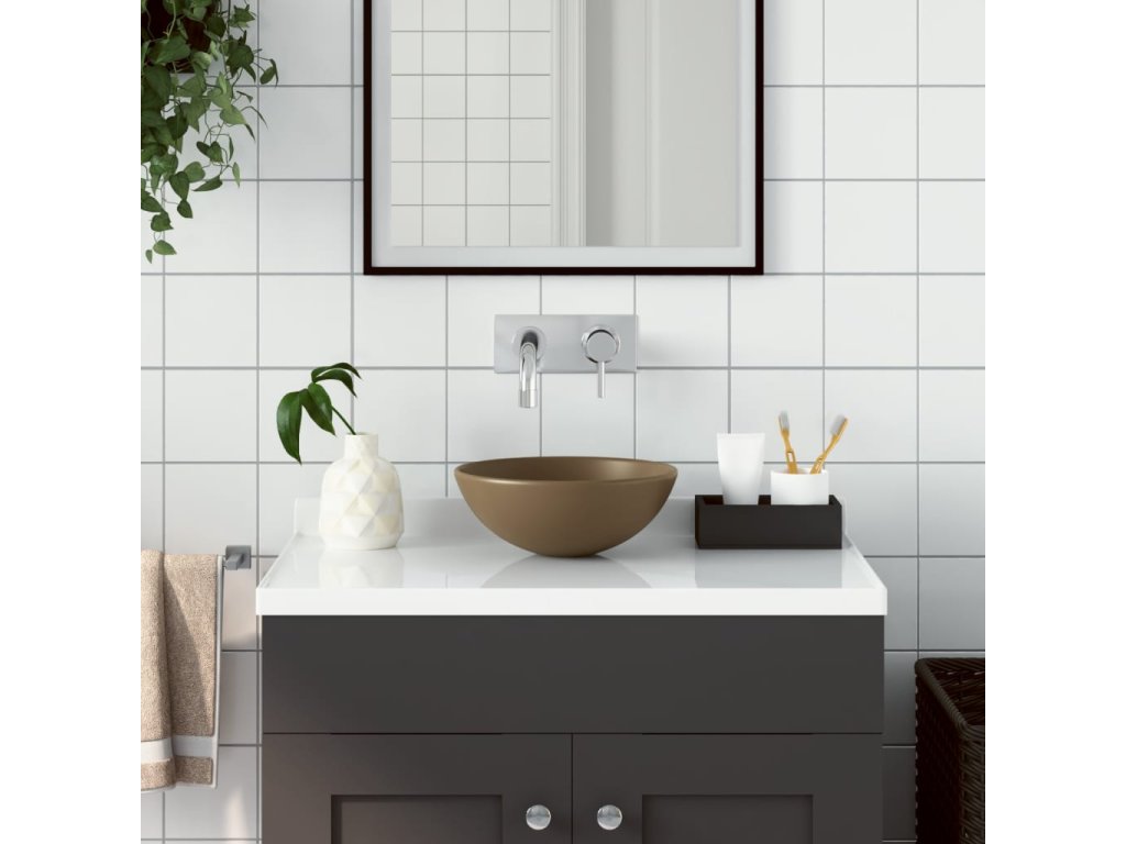 Naše okrúhle umývadlo do kúpeľne, ktoré sa montuje na umývadlovú dosku vnesie do vašej kúpeľne moderný nádych. Je vhodné aj do kozmetických salónov, kuchýň, garáží či na pracovisko. Môže sa namontovať na umývadlovú dosku alebo na kúpeľňovú skrinku.
