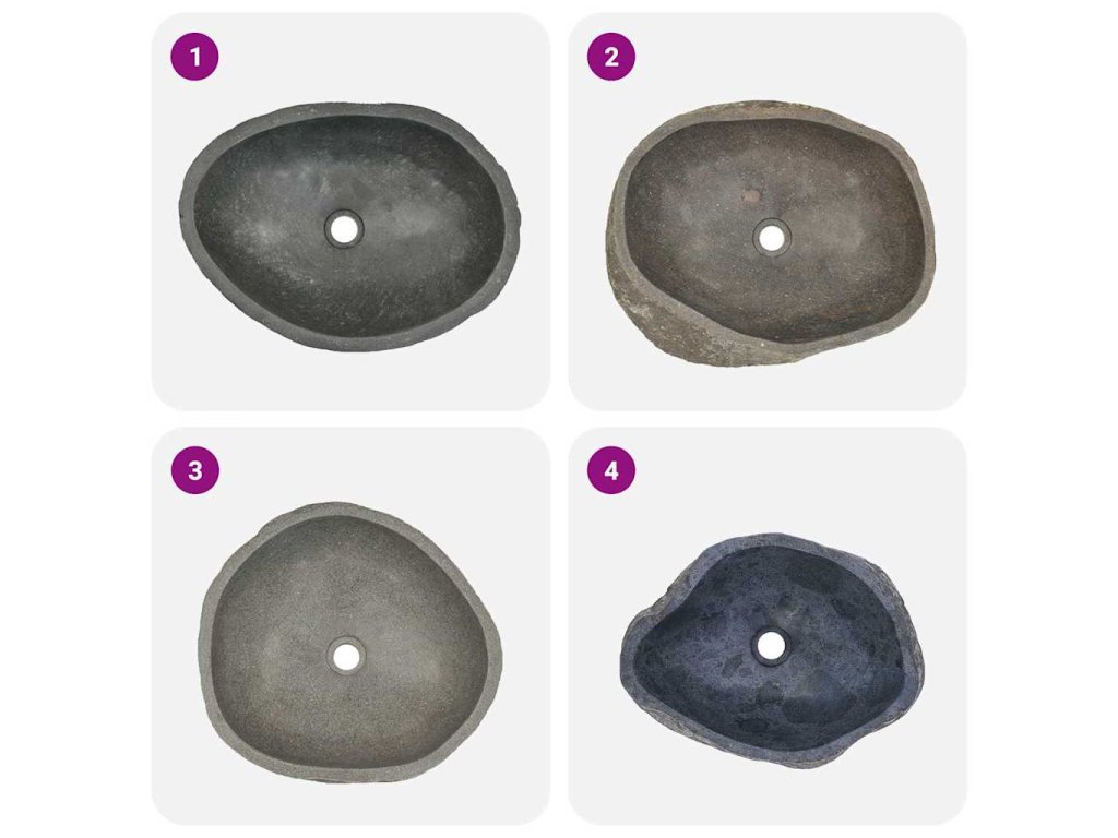Poznámka: Riečny kameň je prírodný materiál, a preto sa farba a tvar jednotlivých výrobkov môžu líšiť. Prosím, pozrite si fotografie výrobku pre lepšiu predstavu. Výrobok môže byť v skutočnosti o niečo svetlejší alebo tmavší než na fotografiách a niekedy sa na ňom môže vyskytovať viacero farieb. Ak si chcete objednať viacero umývadiel, nedokážeme zaručiť, že budú mať rovnakú veľkosť, tvar a farbu.