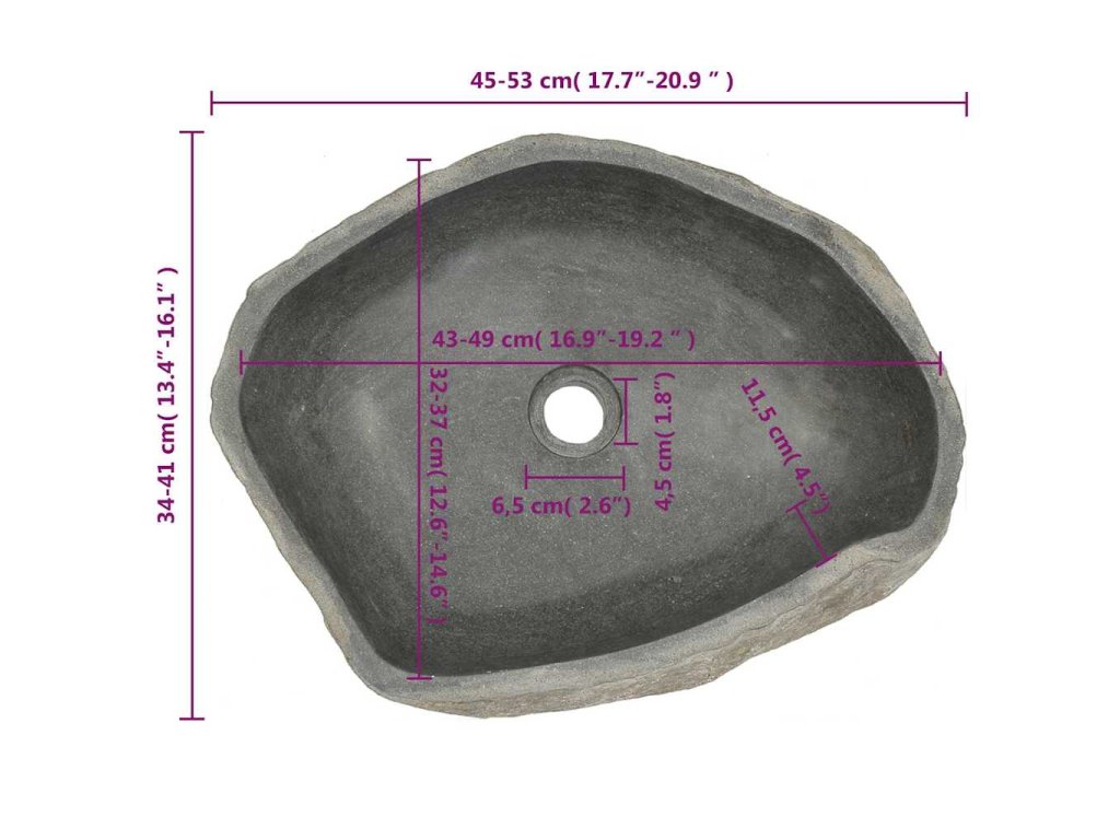 Toto oválne umývadlo je vyrobené z prírodného riečneho kameňa a predstavuje vhodný doplnok do každej kúpeľne či umyvárne.