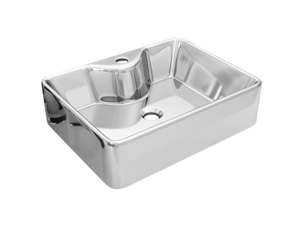 Umývadlo bude mať vo vašom obytnom priestore praktickú, ako aj ozdobnú funkciu. Vďaka svojmu trendovému a modernému striebornému žiarivému dizajnu sa bude toto umývadlo hodiť do každého interiéru. Je vyrobené z keramiky a ľahko sa čistí. Jeho vysoko lesklý povrch dodá vašej kúpeľni šarmantný nádych. Má aj otvor pre batériu na inštaláciu kohútika.