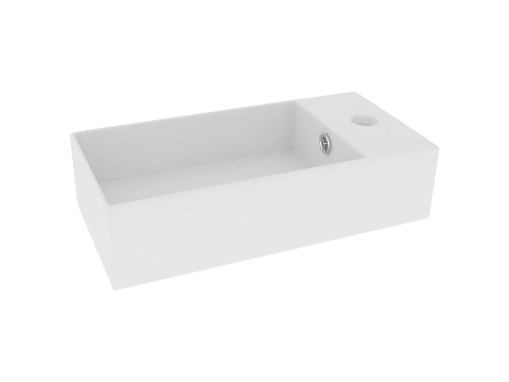 Kvalitná keramika s matným povrchom sa dá ľahko očistiť. Na umývadle sa nachádza prepadový otvor, kadiaľ odtečie voda, v prípade že sa umývadlo príliš naplní. Umývadlo je vybavené aj otvorom na inštaláciu batérie. Odtokový otvor má priemer 4,5 cm. Umývadlo sa montuje na umývadlovú dosku. Upozorňujeme, že batéria nie je súčasťou balenia.