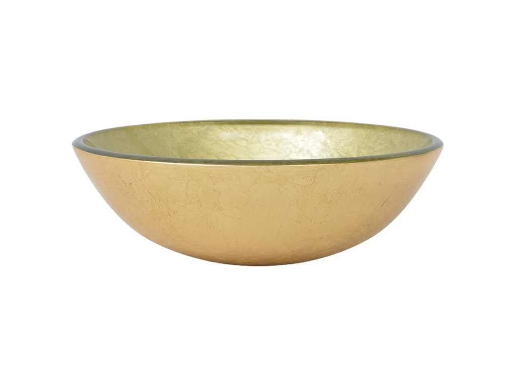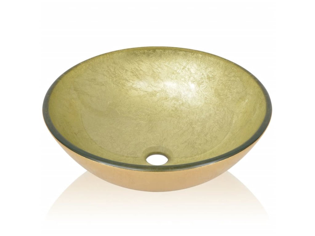 Toto umývadlo je vyrobené z vysoko kvalitného tvrdeného skla s ukončením v zlatej farbe. Bude skvelou súčasťou v akejkoľvek kúpeľne, toalety, či umývacej miestnosti. Je navrhnutá pre umiestnenie na vrch dosky alebo skrinky.