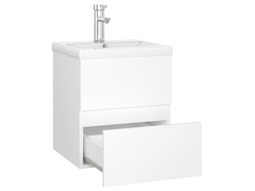 Táto skrinka je vyrobená zo spracovaného dreva, vďaka čomu je pevná a odolná. Úložná skrinka má 1 zásuvku, ktorá poskytuje množstvo priestoru na odkladanie vecí v kúpeľni. Skrinka sa bude dokonale hodiť pod vaše umývadlo a priehľadne uskladní všetky kúpeľňové doplnky. Umývadlo je vyrobené z keramiky a môže slúžiť nielen ako nádoba na každodenné použitie, ale aj ako ozdoba vášho obytného priestoru. Vďaka svojmu trendovému a modernému dizajnu sa toto umývadlo určite hodí do každého interiéru. Má aj prepad na odtekanie vody, keď je umývadlo plné. Jeho glazovaný povrch prináša moderný a zároveň elegantný dizajn. Skrinka a umývadlo sa navyše ľahko čistia vlhkou handričkou.
