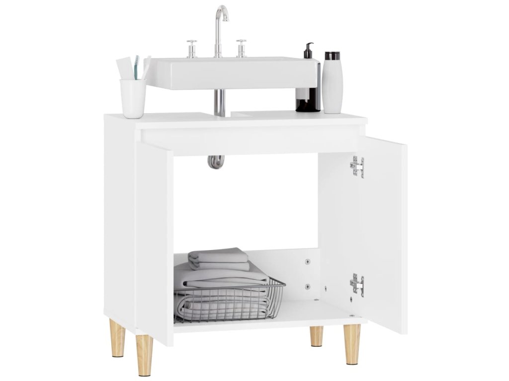 - Drevené nožičky: Drevené nožičky kúpeľňovej skrinky zaisťujú pevnosť a stabilitu.