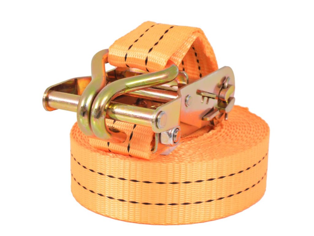 Pevné a robustné upínacie popruhy sú vyrobené z vysokokvalitného polyesteru a ich maximálna viazacia kapacita je 1 tona. Upevňovacie popruhy boli vyrobené v súlade s európskou normou EN-12195-2. Okrem toho sú vybavené ľahko ovládateľnými račňami s rýchlorozopínacími háčikmi v tvare písmena J, ktoré počas prepravy udržia dostatočné napätie, aby náklad zostal na svojom mieste.