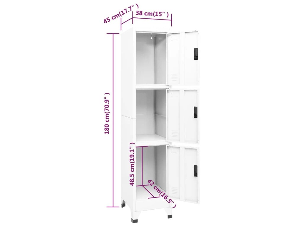 Táto úložná skrinka je vyrobená z ocele, vďaka čomu je odolná a ľahko sa čistí. Každá priehradka je vybavená uzamykateľnými dverami s ventilačnými otvormi. Skrinka má dostatok úložného priestoru na uloženie oblečenia a iných osobných vecí. Držiak na menovky vám navyše umožňuje prehľadne triediť vaše položky. Táto skrinka je vhodná do škôl a kancelárií na uloženie rôznych vecí.