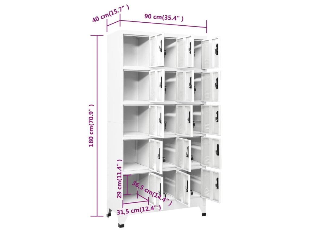 Táto úložná skrinka je vyrobená z ocele, vďaka čomu je odolná a ľahko sa čistí. Každá priehradka je vybavená uzamykateľnými dverami s ventilačnými otvormi. Skrinka má dostatok úložného priestoru na uloženie oblečenia a iných osobných vecí. Držiak na menovky vám navyše umožňuje prehľadne triediť vaše položky. Táto skrinka je vhodná do škôl a kancelárií na uloženie rôznych vecí.
