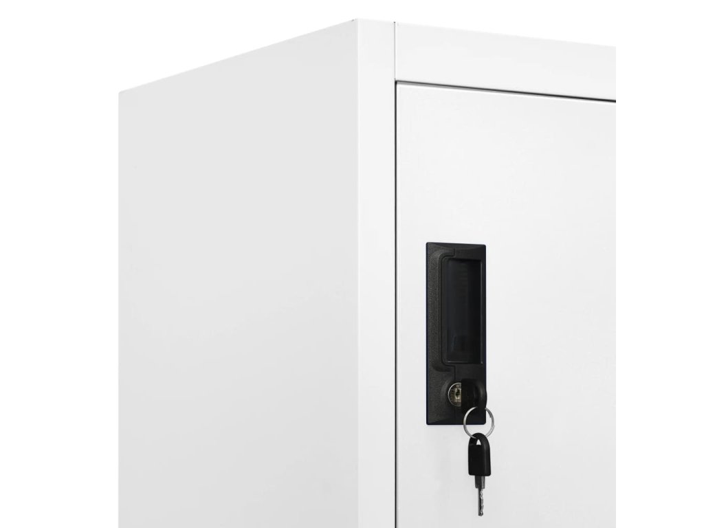 Táto úložná skrinka je vyrobená z ocele, vďaka čomu je odolná a ľahko sa čistí. Každá priehradka je vybavená uzamykateľnými dverami s ventilačnými otvormi. Skrinka má dostatok úložného priestoru na uloženie oblečenia a iných osobných vecí. Držiak na menovky vám navyše umožňuje prehľadne triediť vaše položky. Táto skrinka je vhodná do škôl a kancelárií na uloženie rôznych vecí.