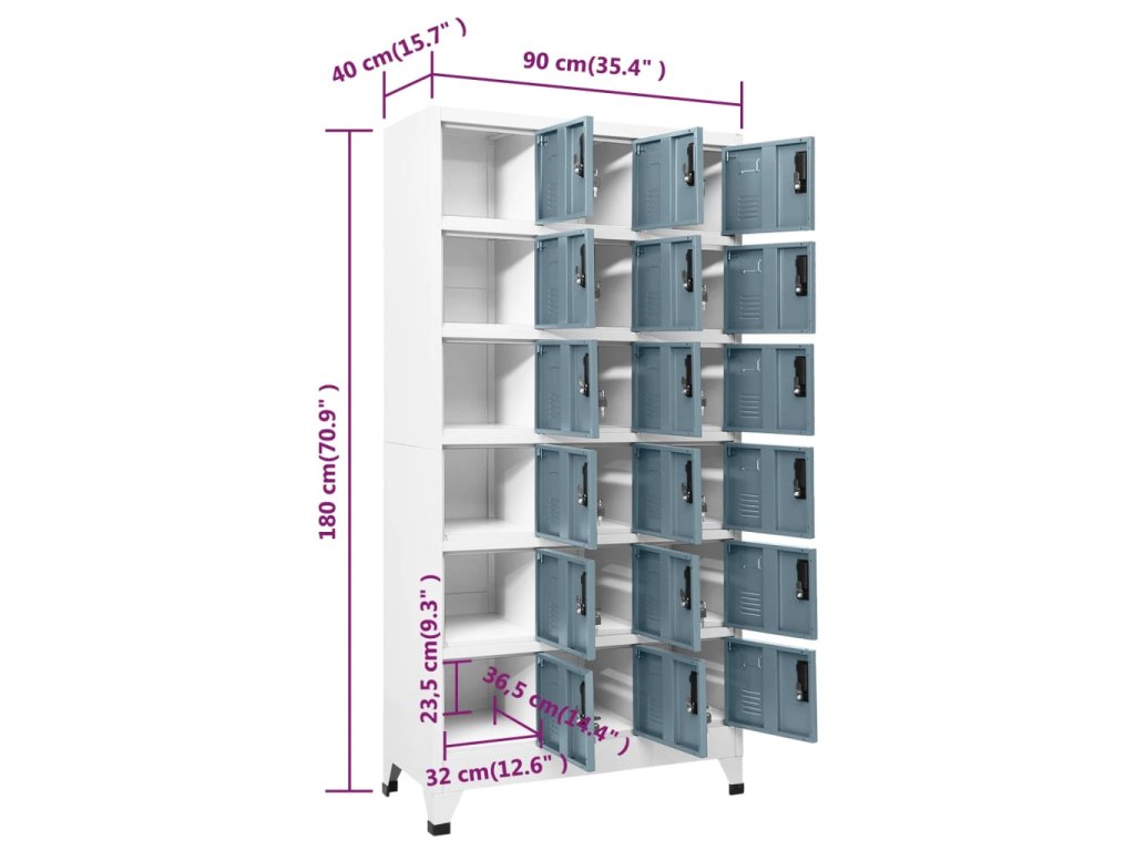 Táto úložná skrinka je vyrobená z ocele, vďaka čomu je odolná a ľahko sa čistí. Každá priehradka je vybavená uzamykateľnými dverami s ventilačnými otvormi. Skrinka má dostatok úložného priestoru na uloženie oblečenia a iných osobných vecí. Držiak na menovky vám navyše umožňuje prehľadne triediť vaše položky. Táto skrinka je vhodná do škôl a kancelárií na uloženie rôznych vecí.